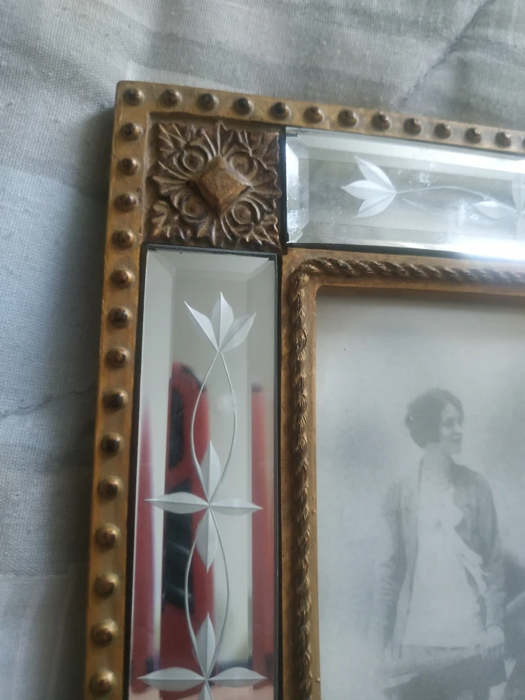 Ornate gold frame. Features etched mirrored accents. Holds a 4" x 6" photo. Perfect for vintage photos or dΓ©cor.