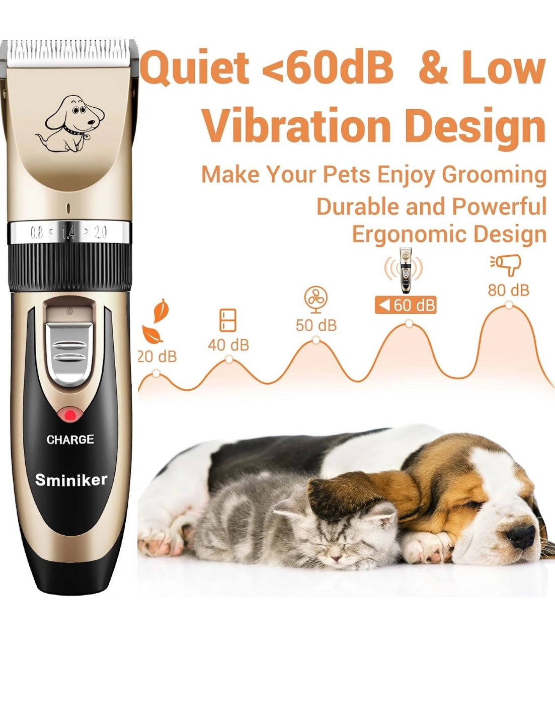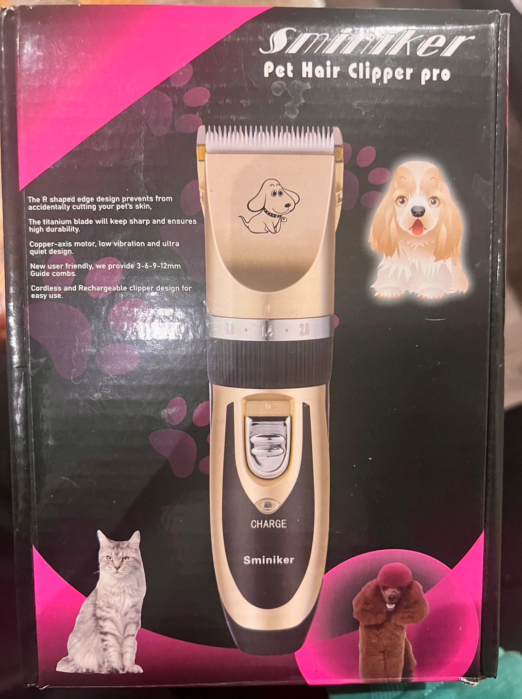 Dog trimmer. Titanium blade. Multiple length settings. Includes extra blades. New user friendly design. Easy to use.