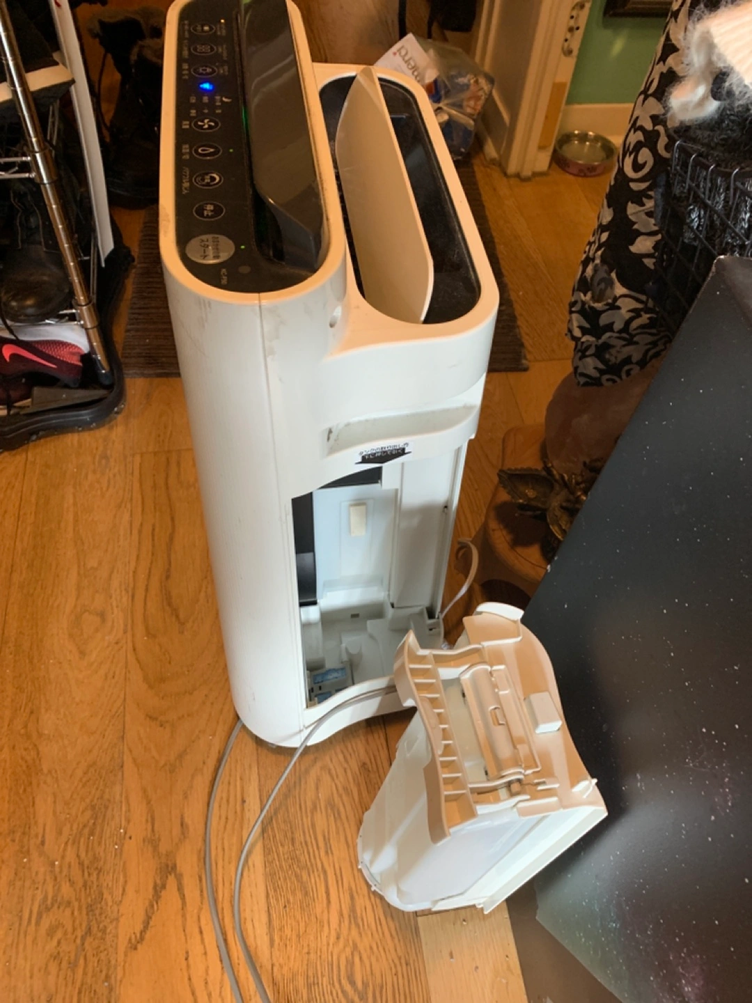 Used Sharp air purifier, dehumidifier and humidifier. Model KC-700SU. Some cosmetic wear. Functions perfectly, but itβs in Japanese. And I forgot how to use it