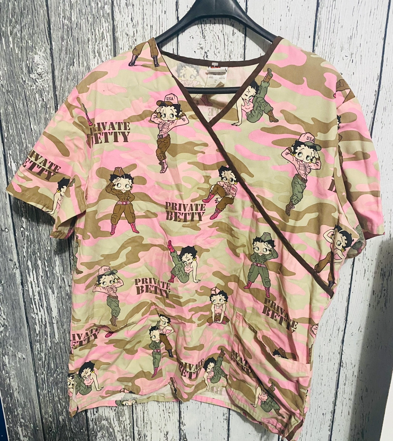 Private Betty Boop Scrub Top Vintage print Camo Top New Never Worn Size Large $15.00 Comes from a P/S free home Pickup is Whitby BSN & Maple