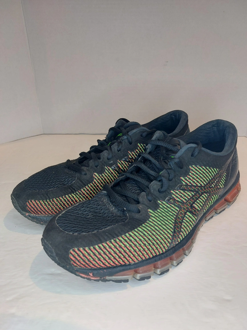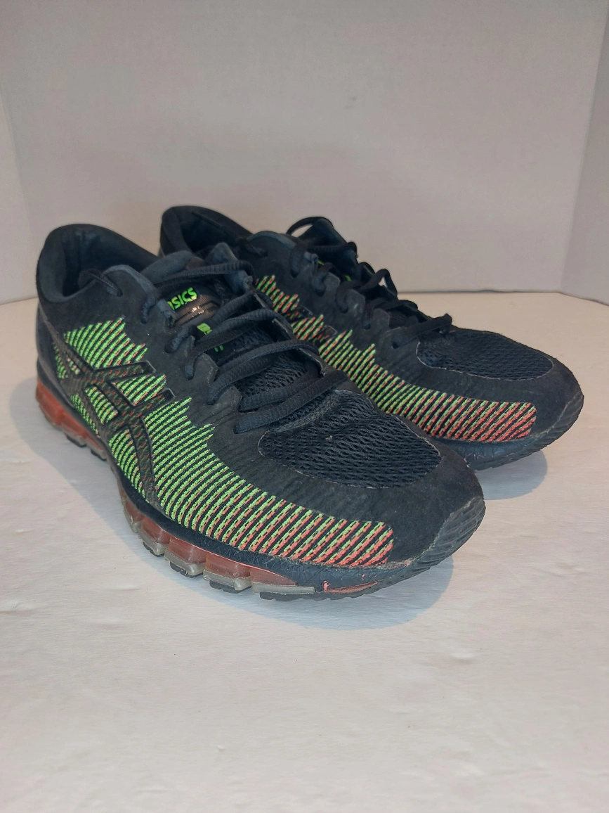 Men's ASICS GEL-QUANTUM 360 running shoes. Black with lime green and red accents. Size 10 men's. in good condition. No insoles, unfortunately - unable to find them.