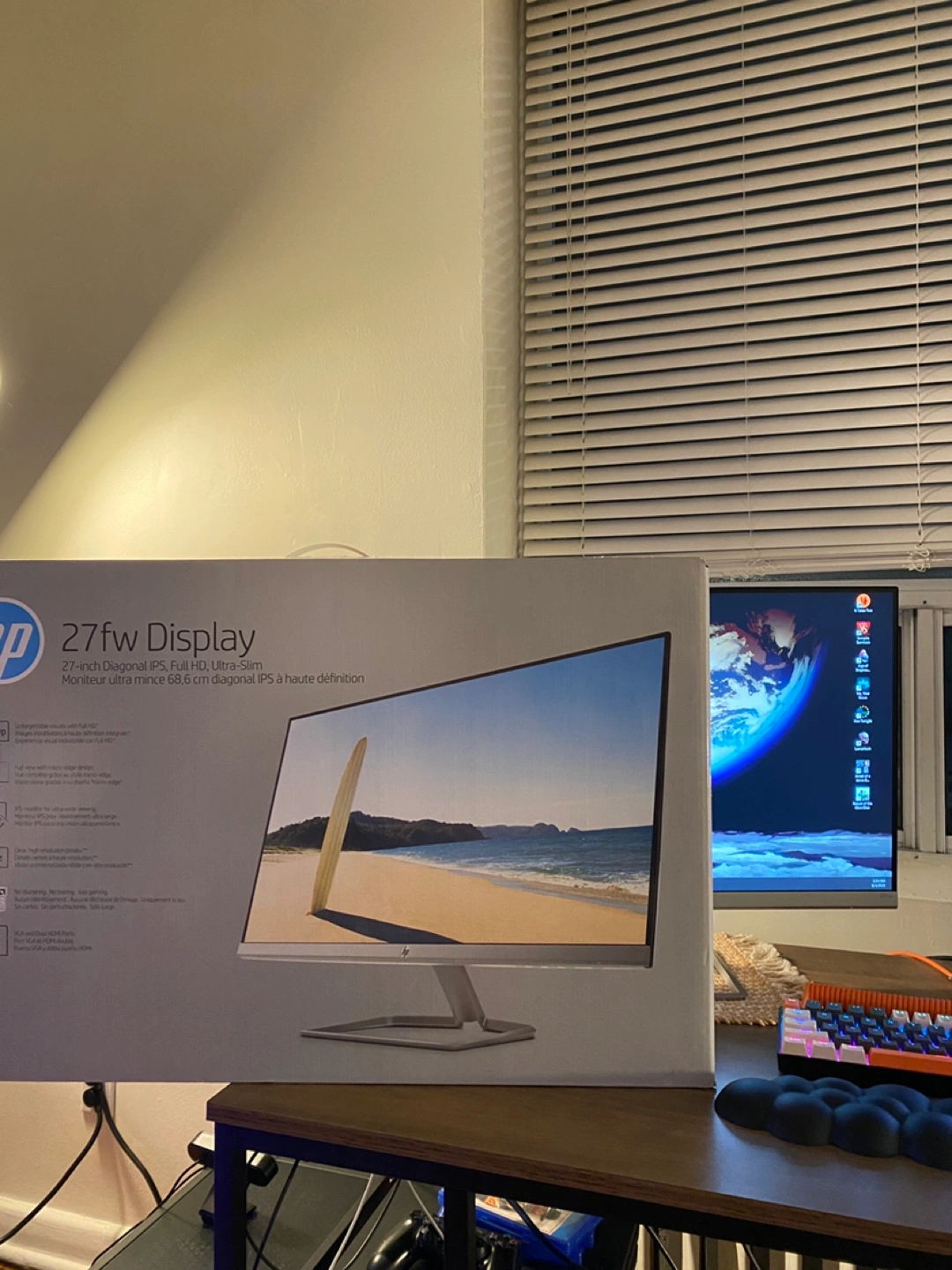 HP 27-inch Diagonal IPS, 75Hz 5ms, Full HD, AMD FreeSync, Ultra-Slim Monitor. 1080p resolution. There are no dead pixels, it comes with its own box and all the cables. As you can see in the third picture, the power cable entrance has a sensitivity issue. I fixed this issue by using a rubber band. You can check the monitor when you pick it up. Open to offers!🖥️