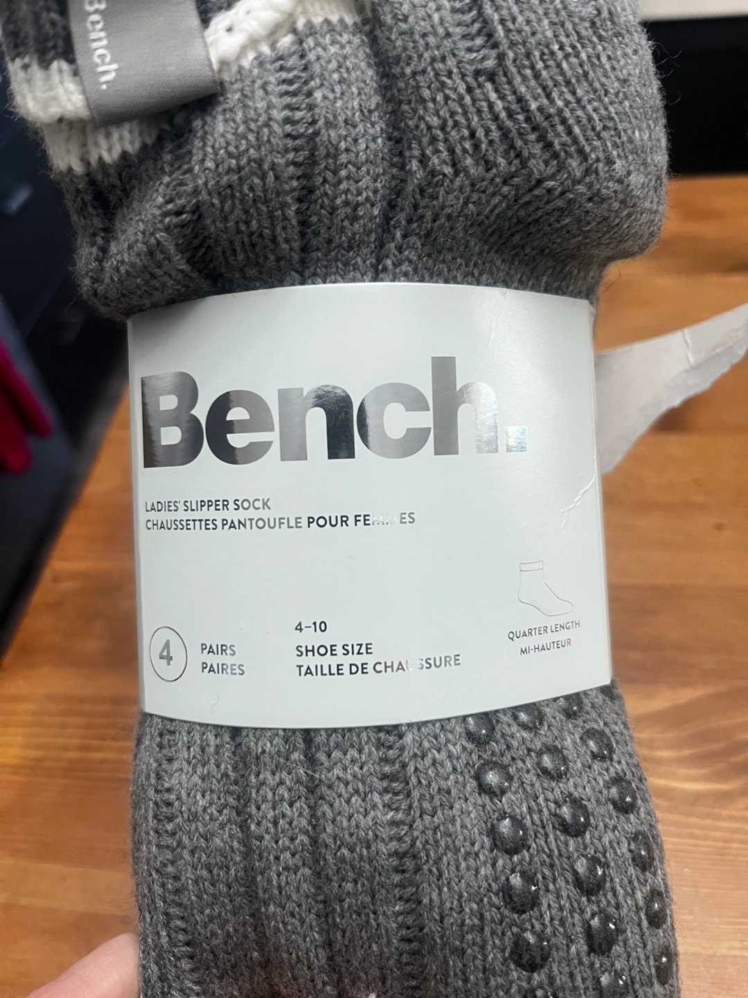 Bench Four pairs of ladies slipper socks. Sizes 4-10. Quarter length. New never worn. Pick up only. Closest intersection is Jane St and Eglinton Ave west