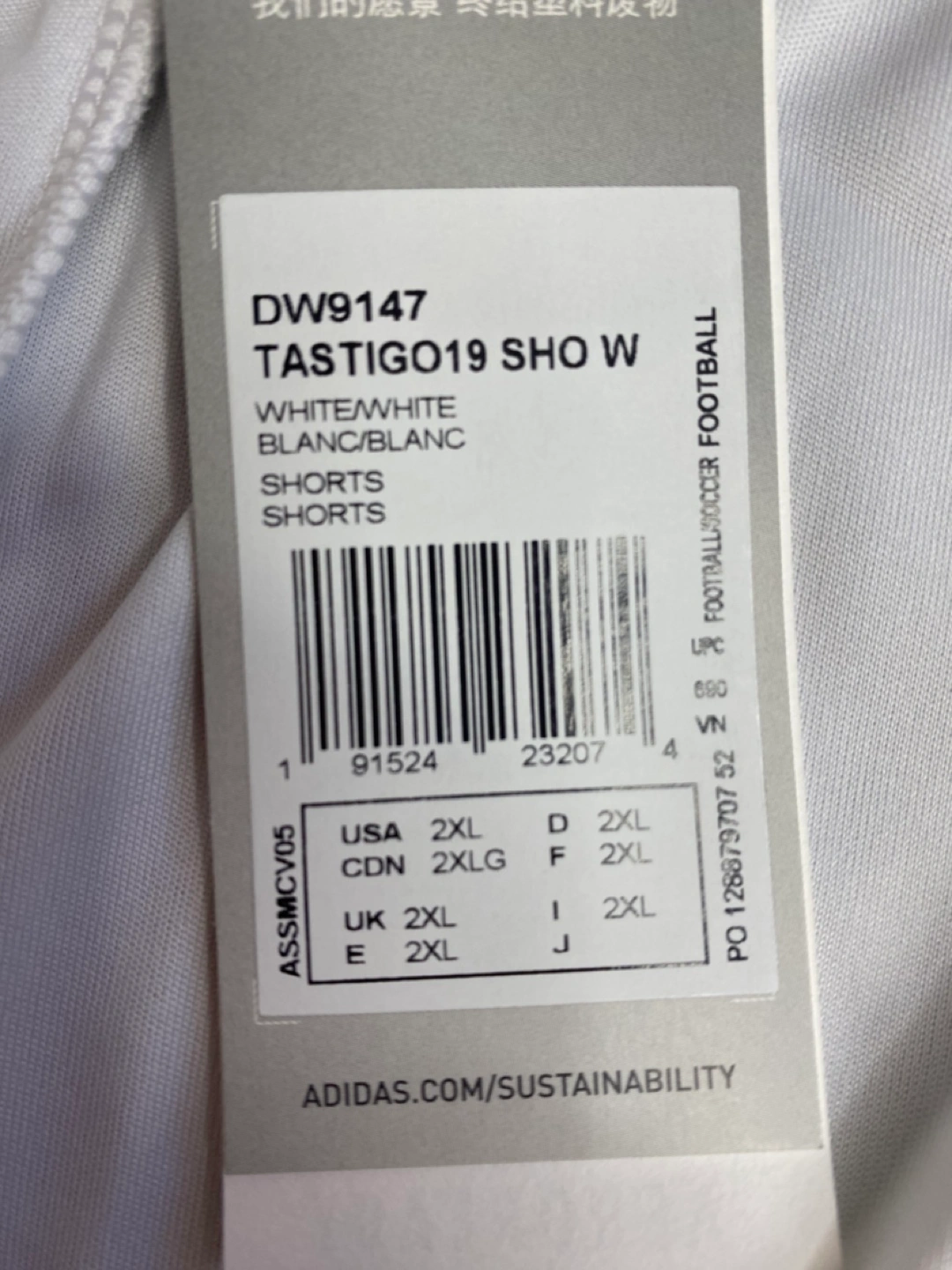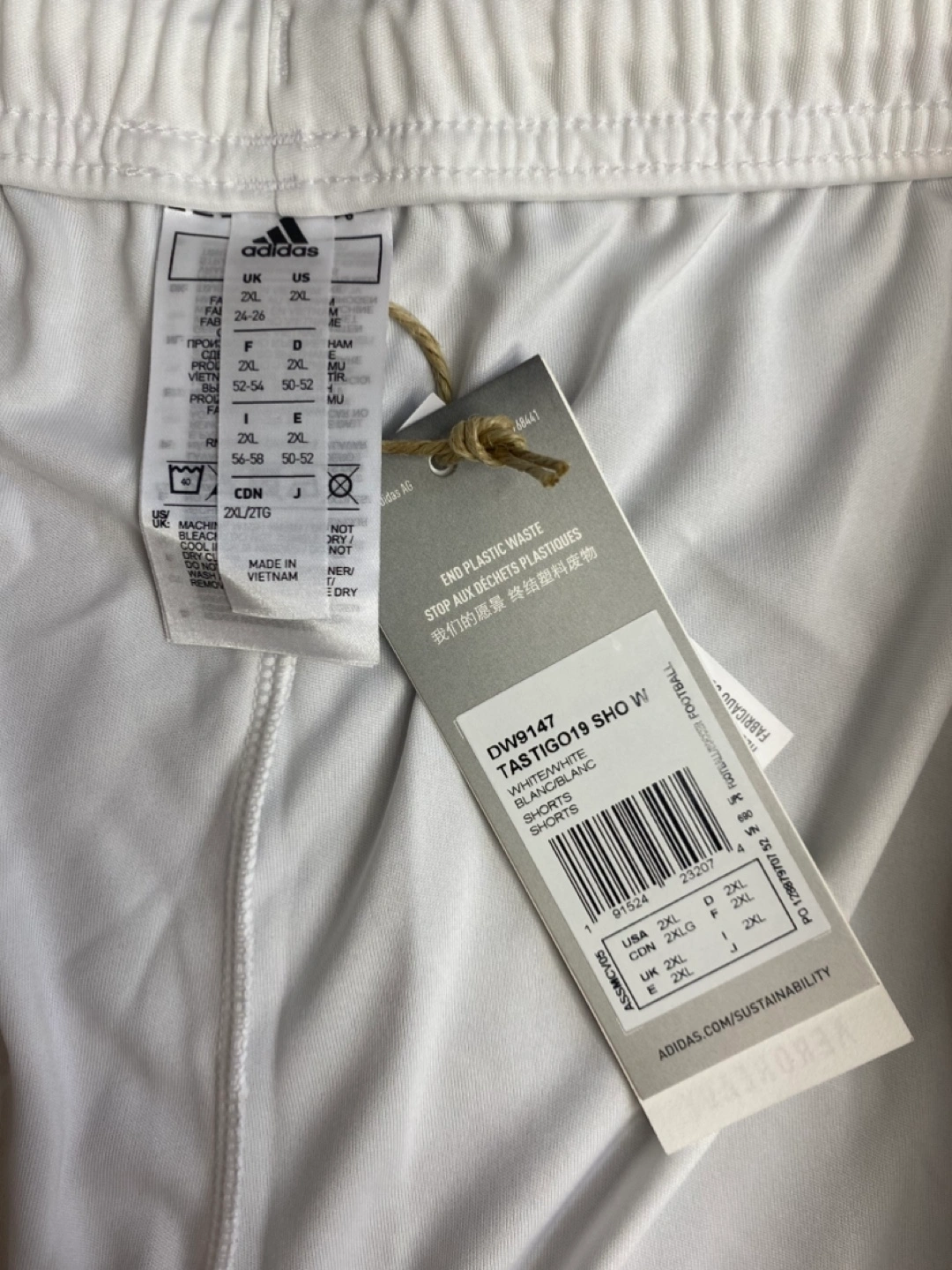 Women's Adidas Tastigo19 football shorts. White colour. Size 2XL. Elastic waistband. Side pockets. Brand new with tags.