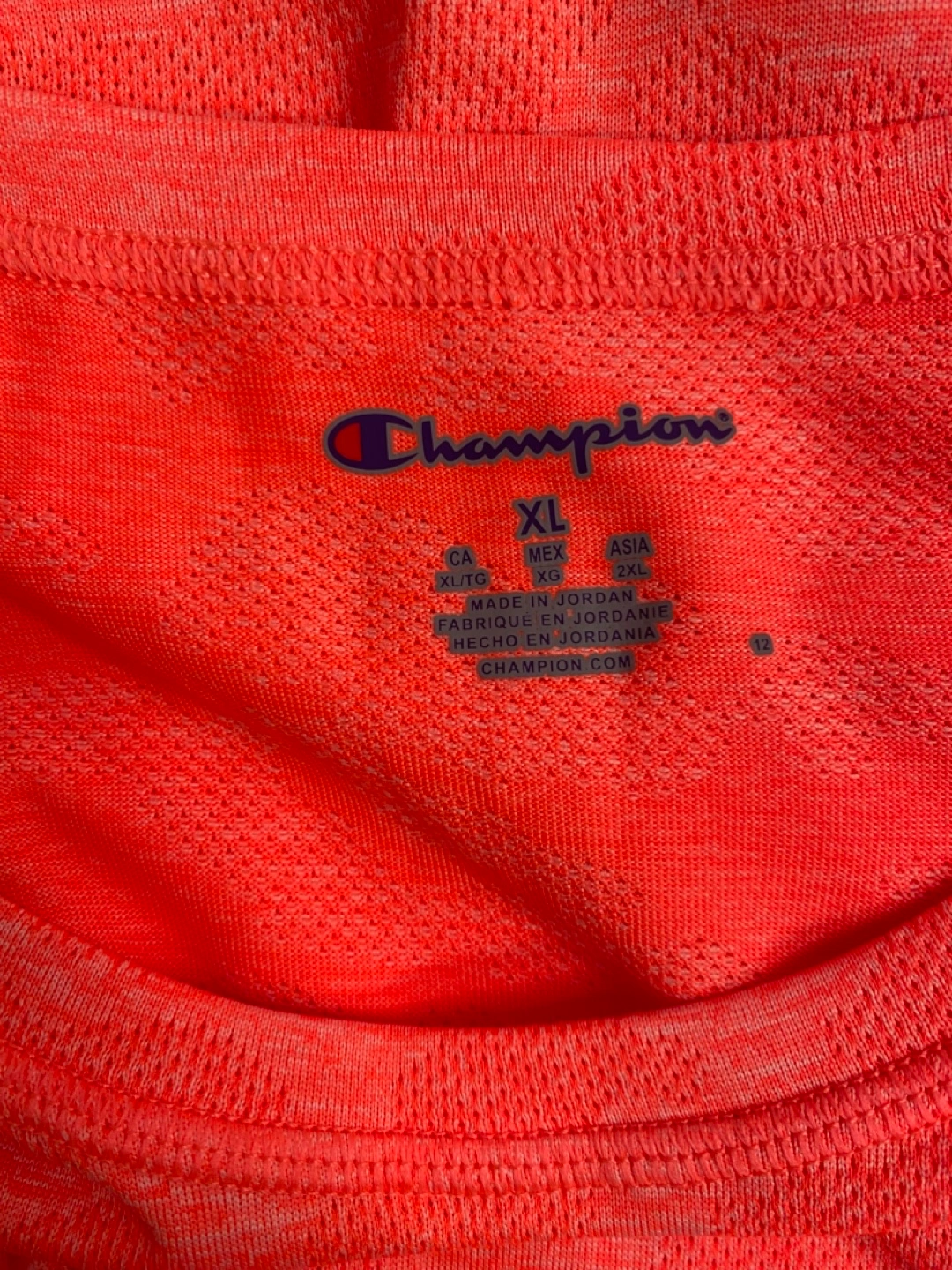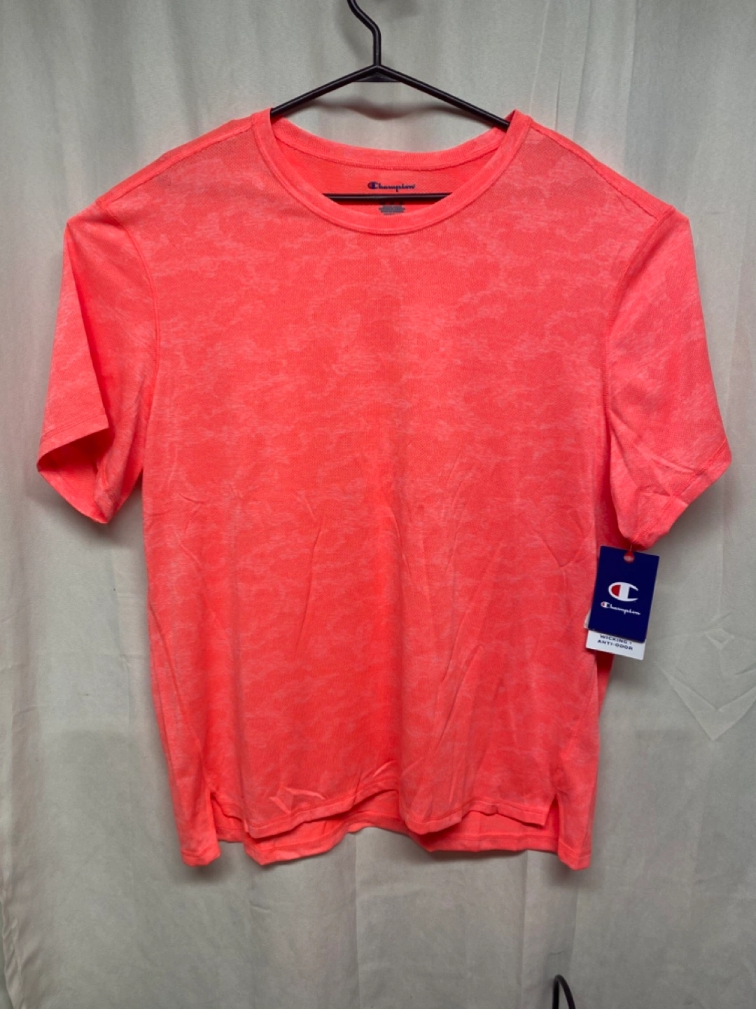 Coral Champion women's t-shirt. Size XL. Short sleeves. Moisture-wicking and anti-odor technology. Made in Jordan. New with tags.