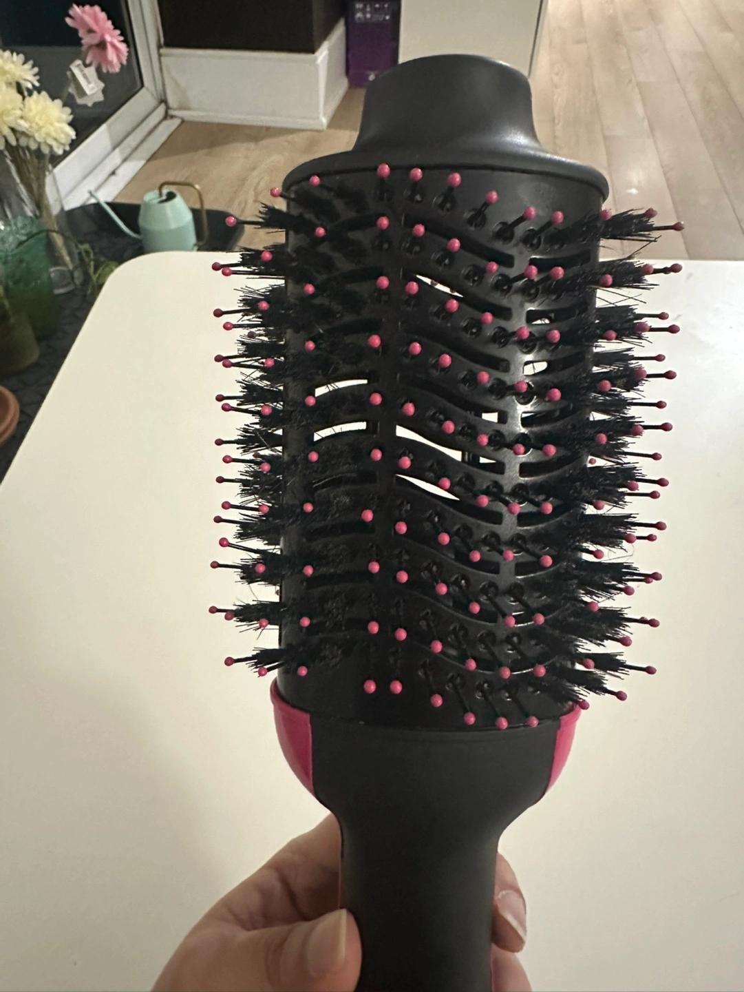 Revlon hot air brush. Black and pink. Good for styling hair. Includes cord and plug. Cold and hot settings. Pickup only. Used few times in excellent condition.