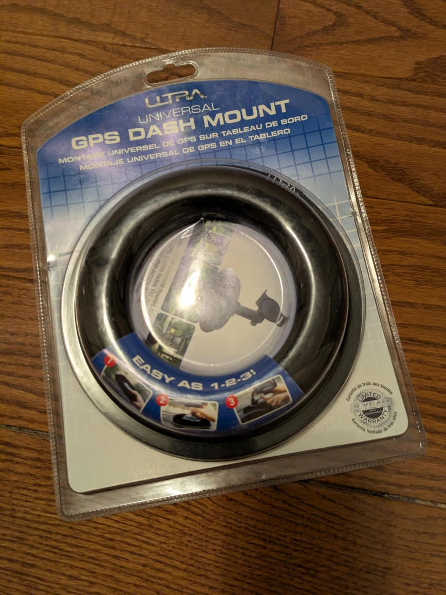 New in package. Universal GPS dash mount. Easy installation. Limited three-year warranty.