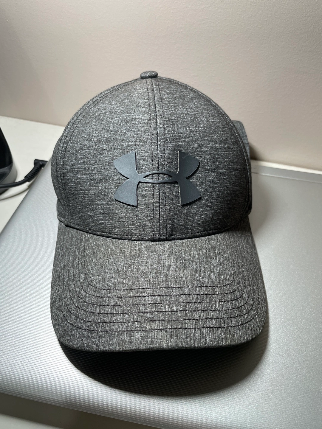 Gray baseball cap. Adjustable. Features Under Armour logo and CoolSwitch technology. Good condition.