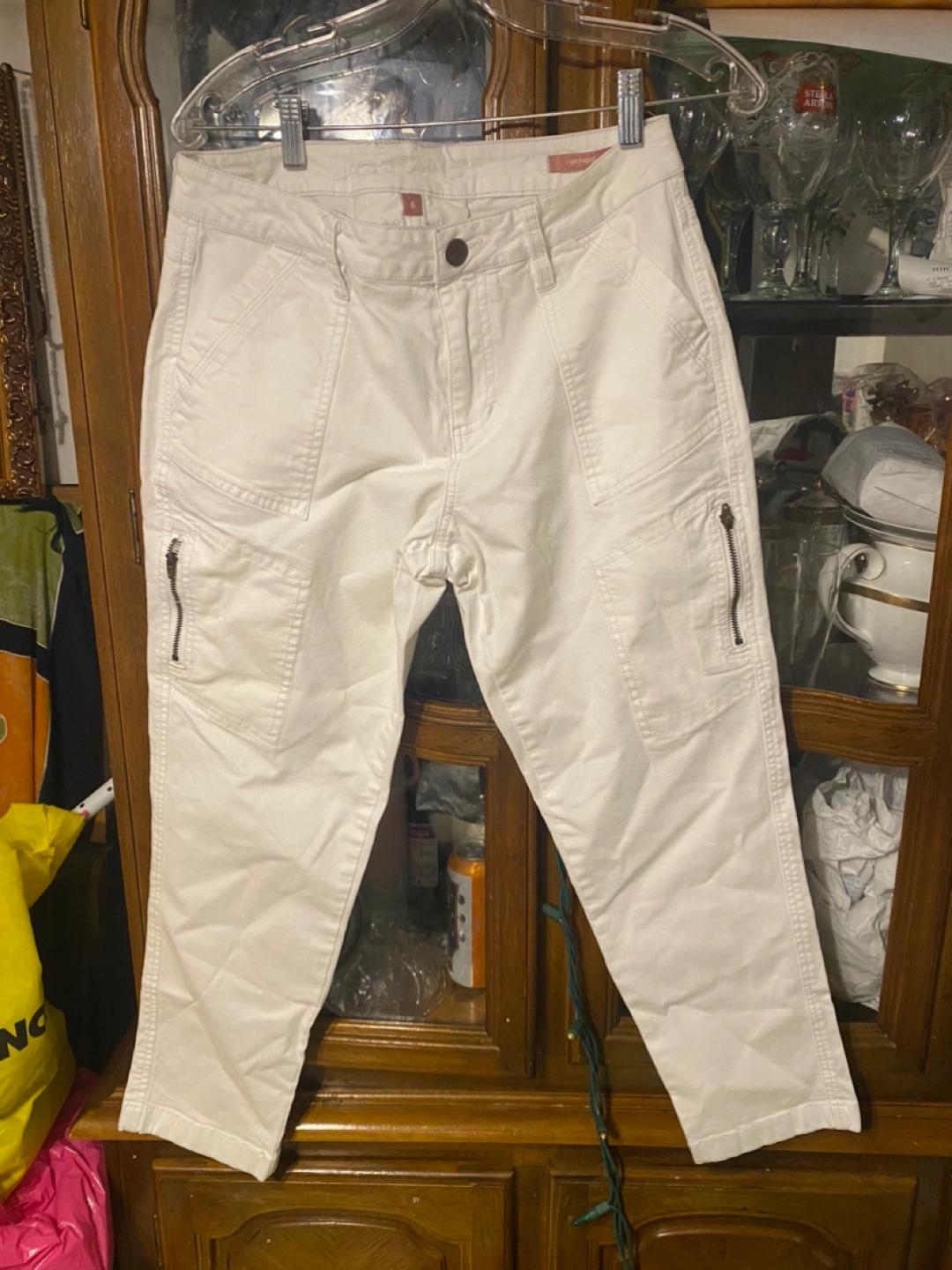 Women's white cargo pants. Size 6 Zip pockets. Button and zipper closure. Great for spring and summer. Good condition Cash only