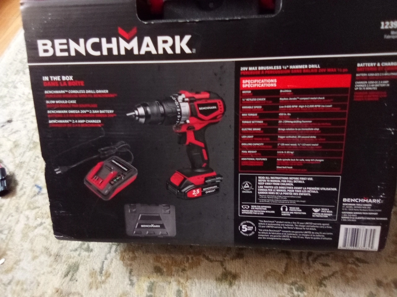 New cordless drill driver kit. Includes 20V battery and charger. Blow mould case.