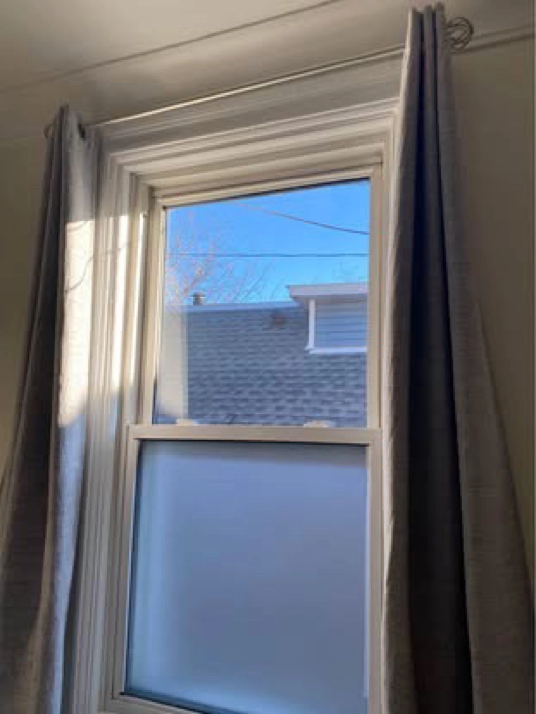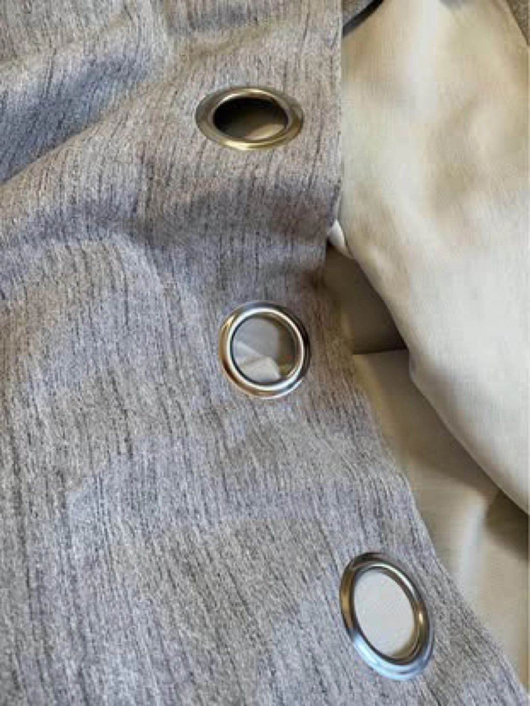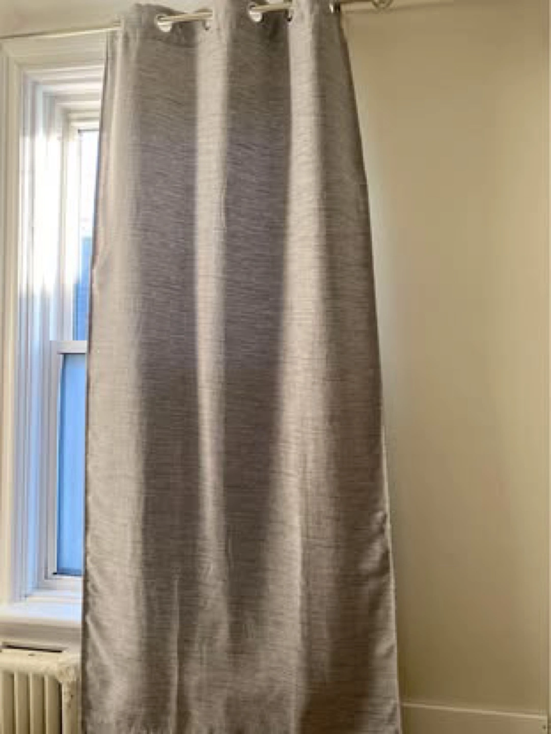 Pair of grey curtains. Grommet top. Light filtering. H: 84 in W: 36 in Used for one year. Great condition. 100% polyester. $20 for the set