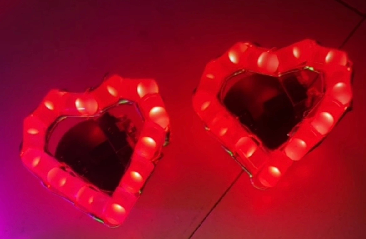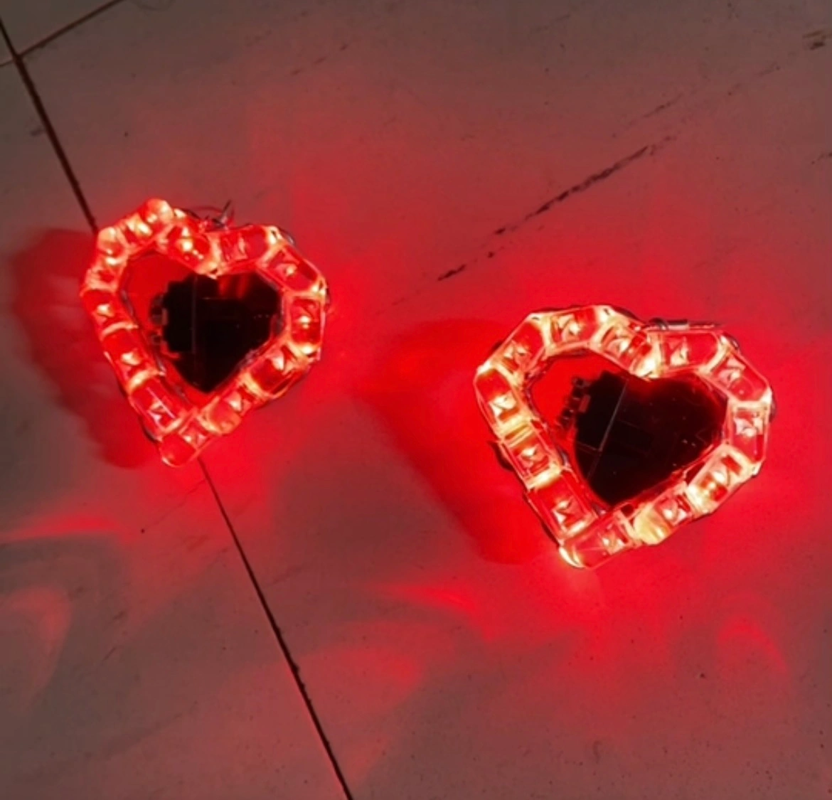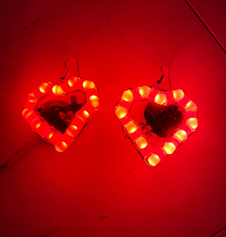 Pair of red light-up heart earrings. LED lights. Unique design. Perfect for parties or concerts.