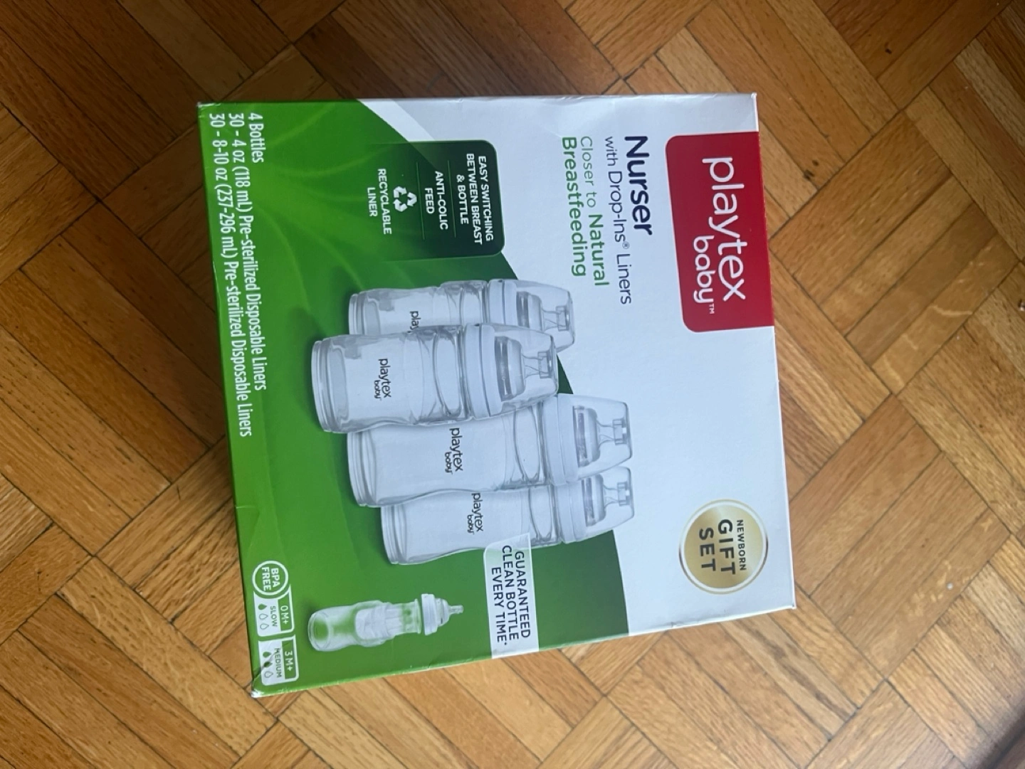 Pre-sterilized disposable bottle liners. Easy to use. Convenient for breastfeeding. Recyclable packaging. New in box. 2nos of 8oz and 1 no. of 4oz