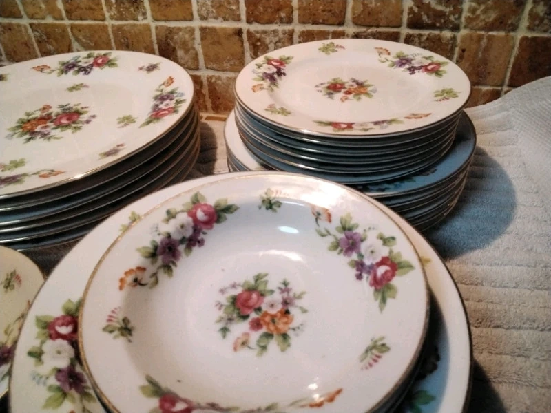 Collection of Sango Japan China Dishes at Least 5 Sets with Extra Dishes but only 3 Bowls Smaller Bowls Dinner Plates, Salad Plates, Bread and Butter Plates, Rimmed Soup Bowls, Teacups and Saucers All 8n Excellent Condition and Great Price. 240.00 Now Reduced and Very Firm $90.00 ABSOLUTELY NO MORE REDUCTIONS Please Pickup Clarkson Area Mississauga Via Enclosed Porch for Easy Viewing or I offer Delivery Willing to Ship at Buyers Expense Please take time to view my other Ads for more China Sets and Collectibles Accepting Cash or Etransfer Only