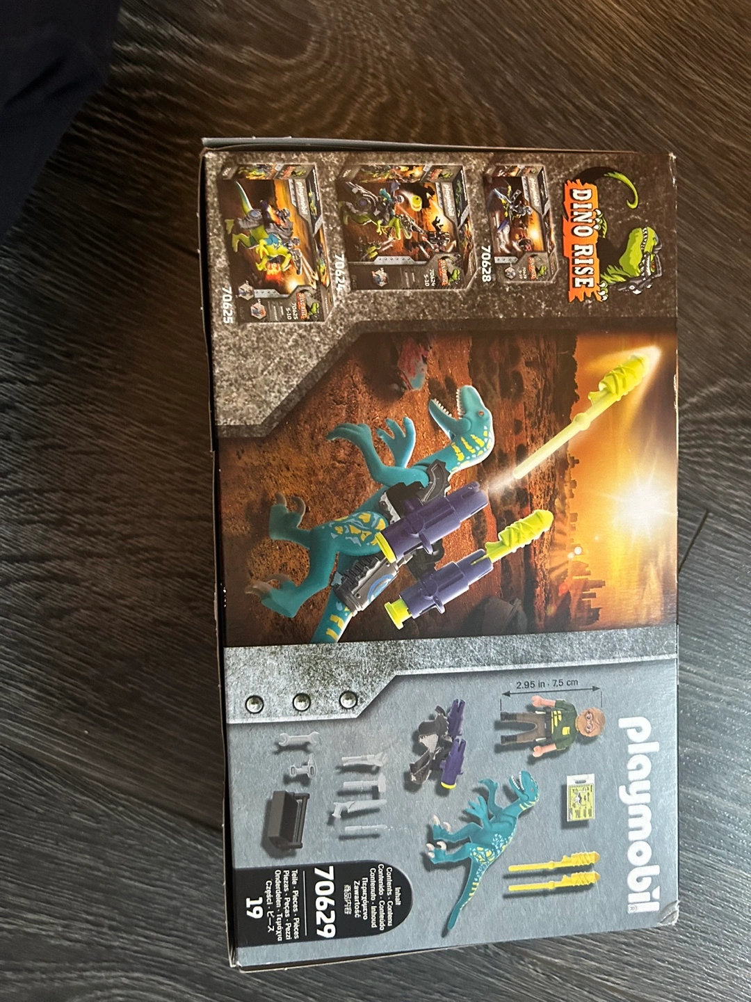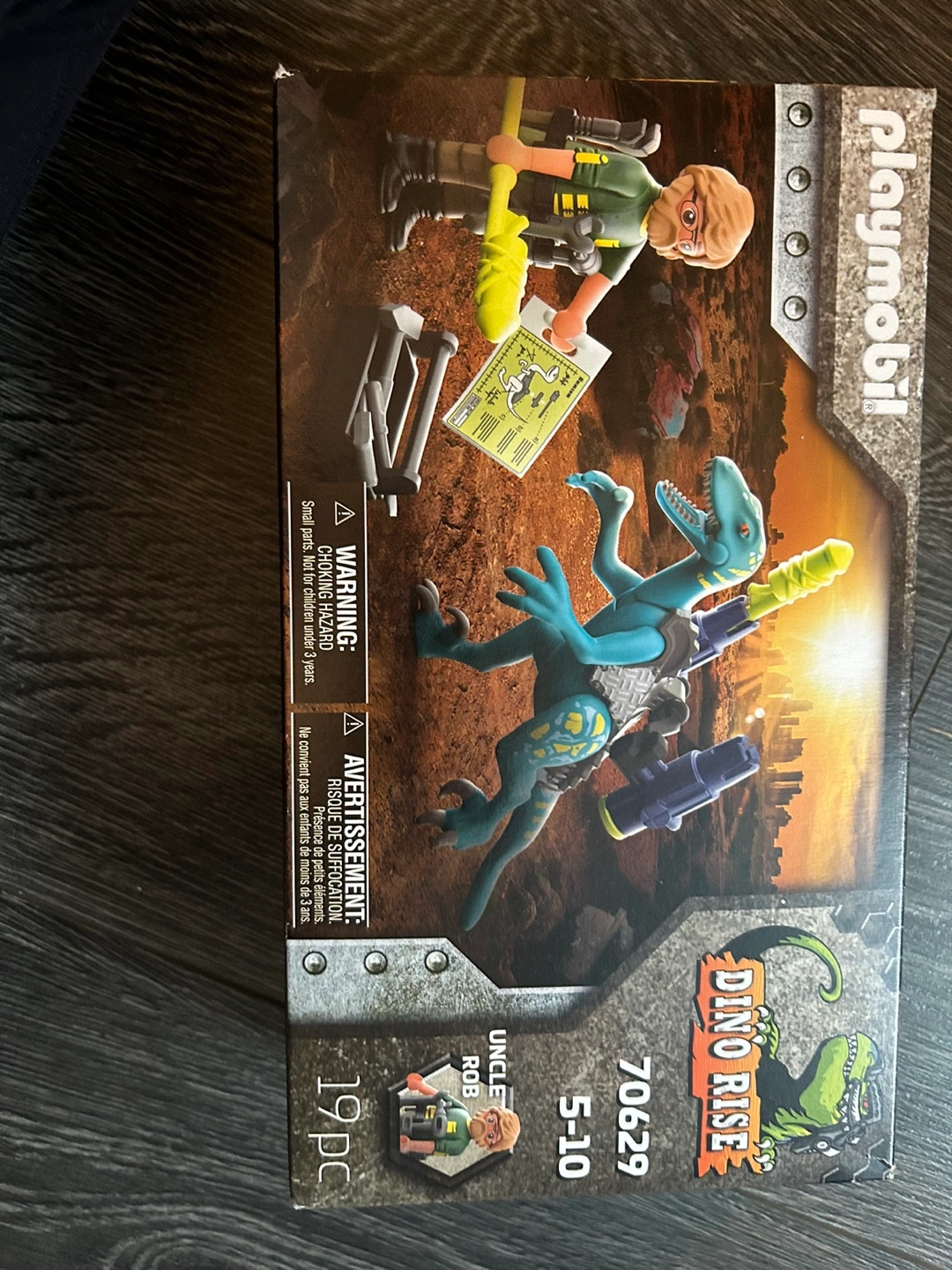 Playmobil Dino Rise set number 70629. Features Uncle Rob and a dinosaur. 19 pieces. New in box.