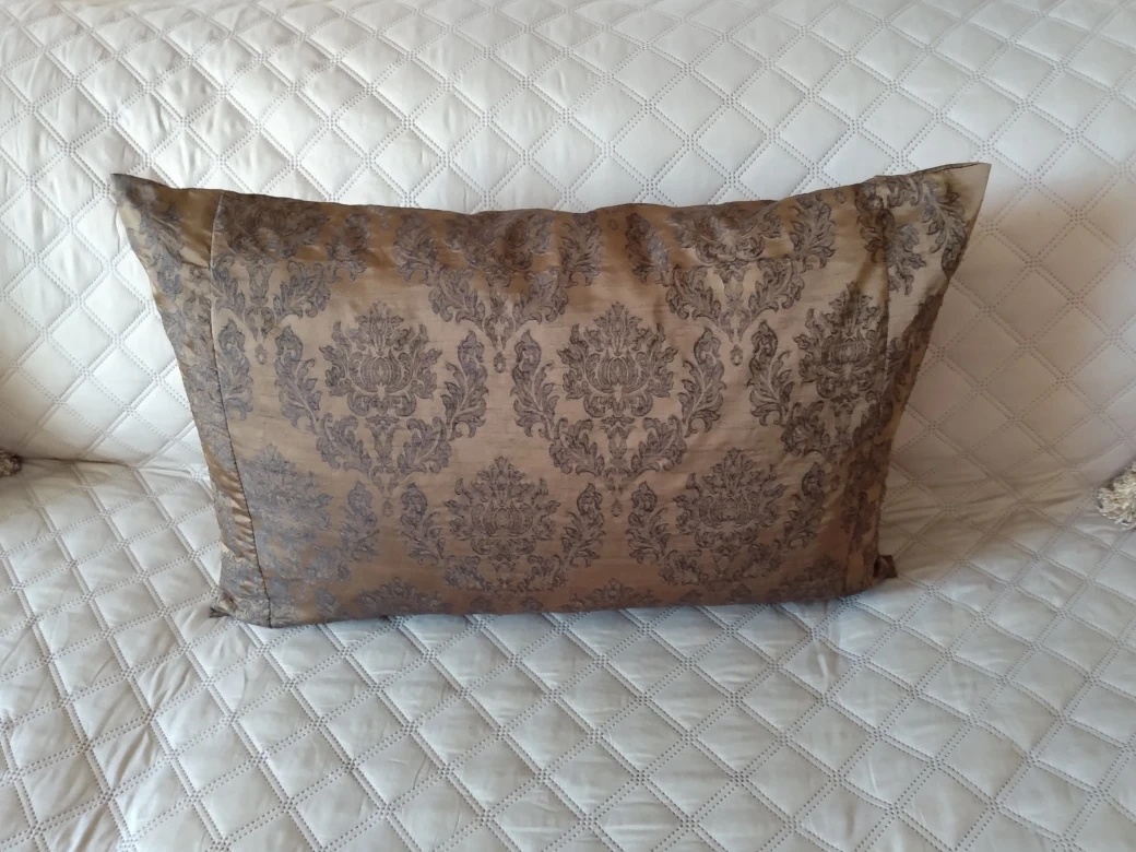 Beautiful decorative throw pillow. Features a brown and grey damask pattern. Soft material. Great for adding a touch of elegance to your living space. Measures approximately 16" x 12" (Cash pick up )
