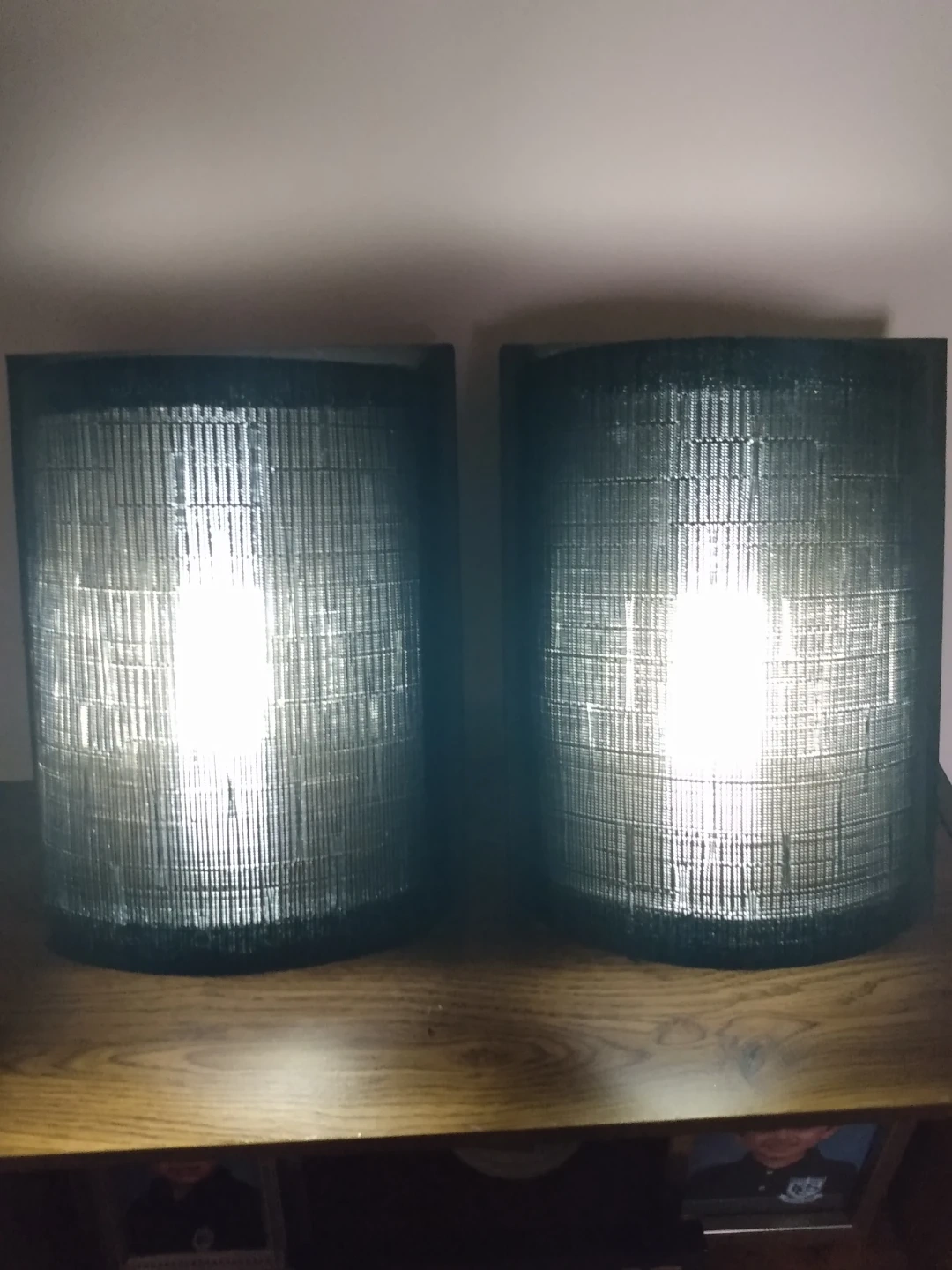 Unique wall sconce. Black woven shade. Contemporary style. Ready to hung. Uses portable lights , Great for Cottages, Camping or home use. Can be sold separately $5 each (Cash Pick up)