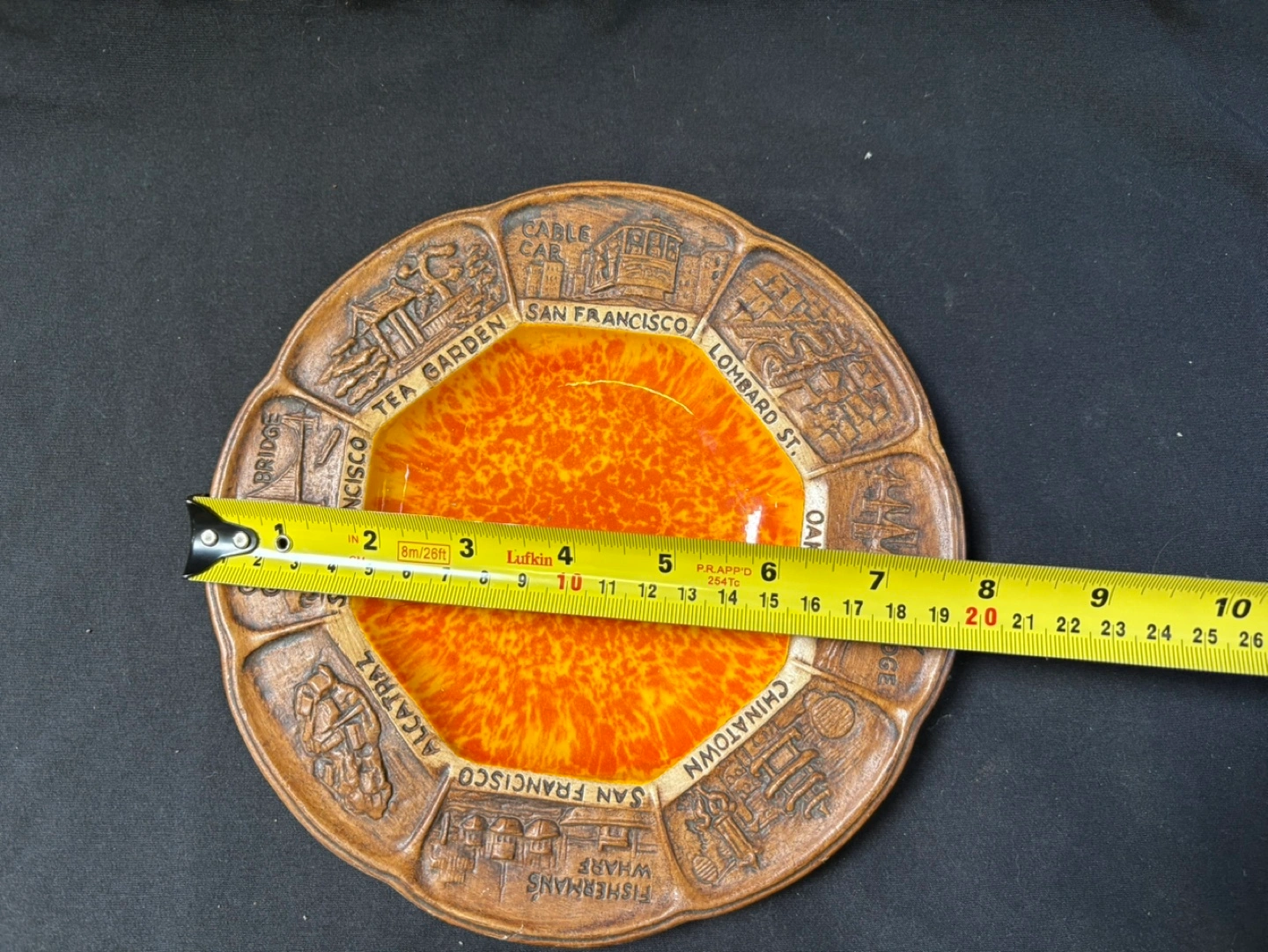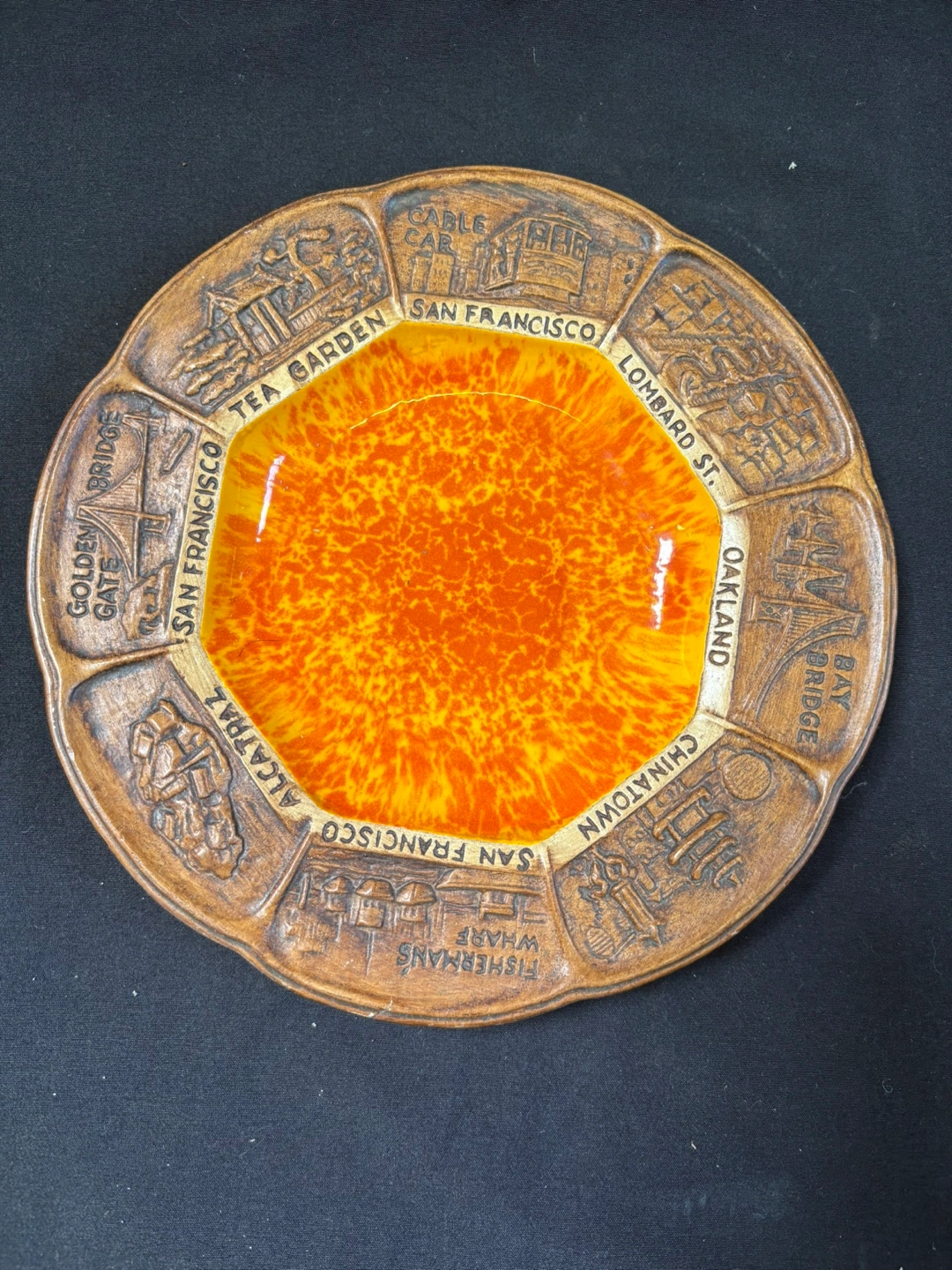 Like new Unique ashtray featuring iconic San Francisco landmarks. Orange and brown colour scheme. Treasure Craft USA embossed on the bottom. Measures approximately 7 inches in diameter. $1 Pick up Victoria Park & O’Connor area