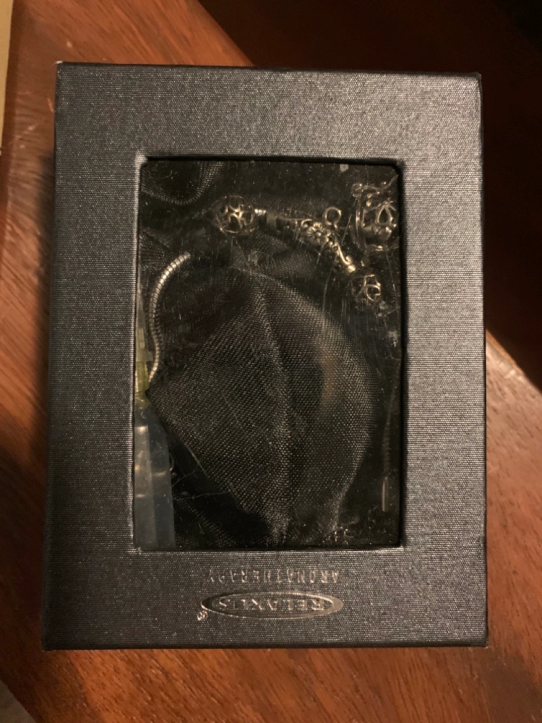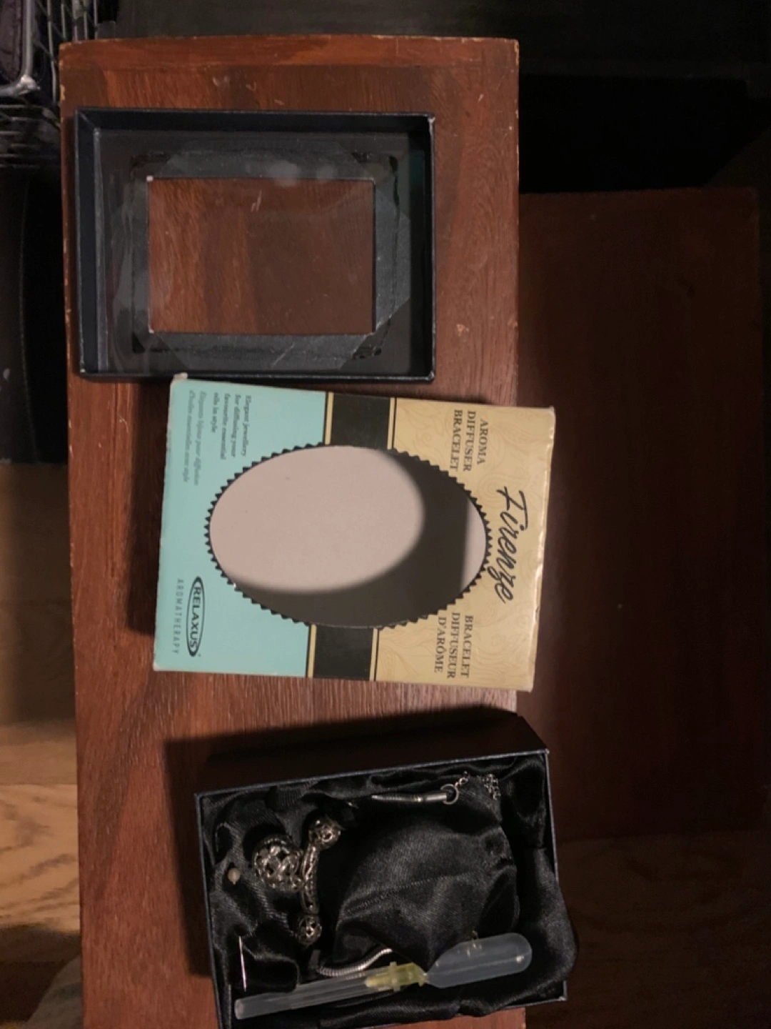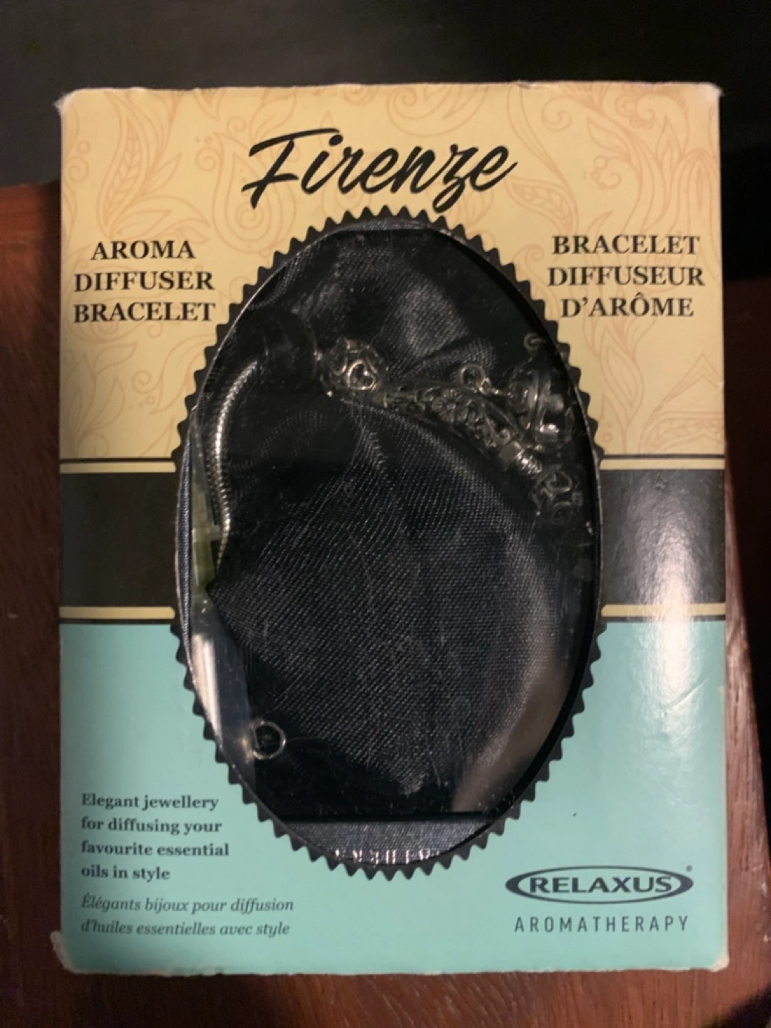 New in box. Aroma diffuser bracelet. Silver with Black lava stone.Includes small pipette. Elegant jewellery for diffusing favourite essential oils.