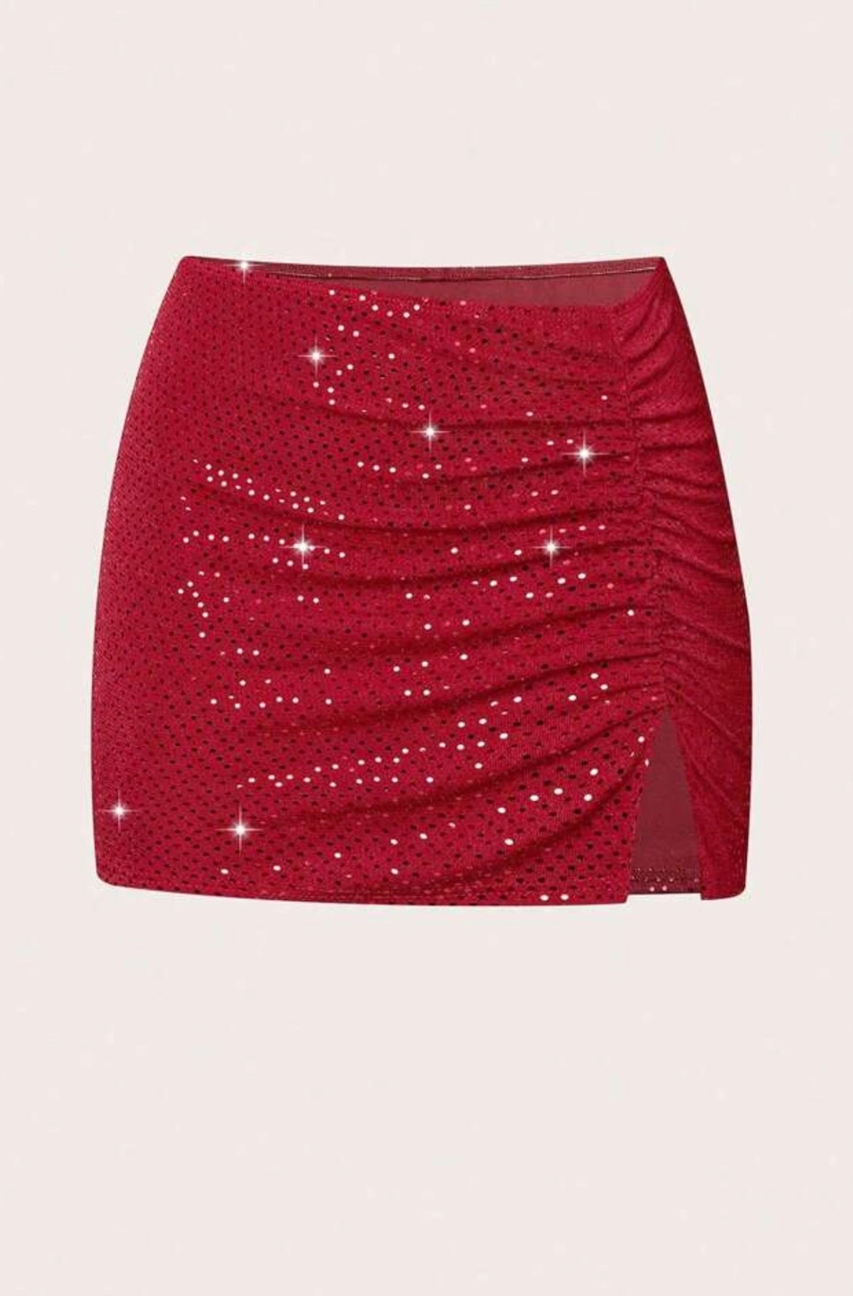 Sparkly red mini skirt. Features a side slit and a stretchy fabric. Great for a night out. New
