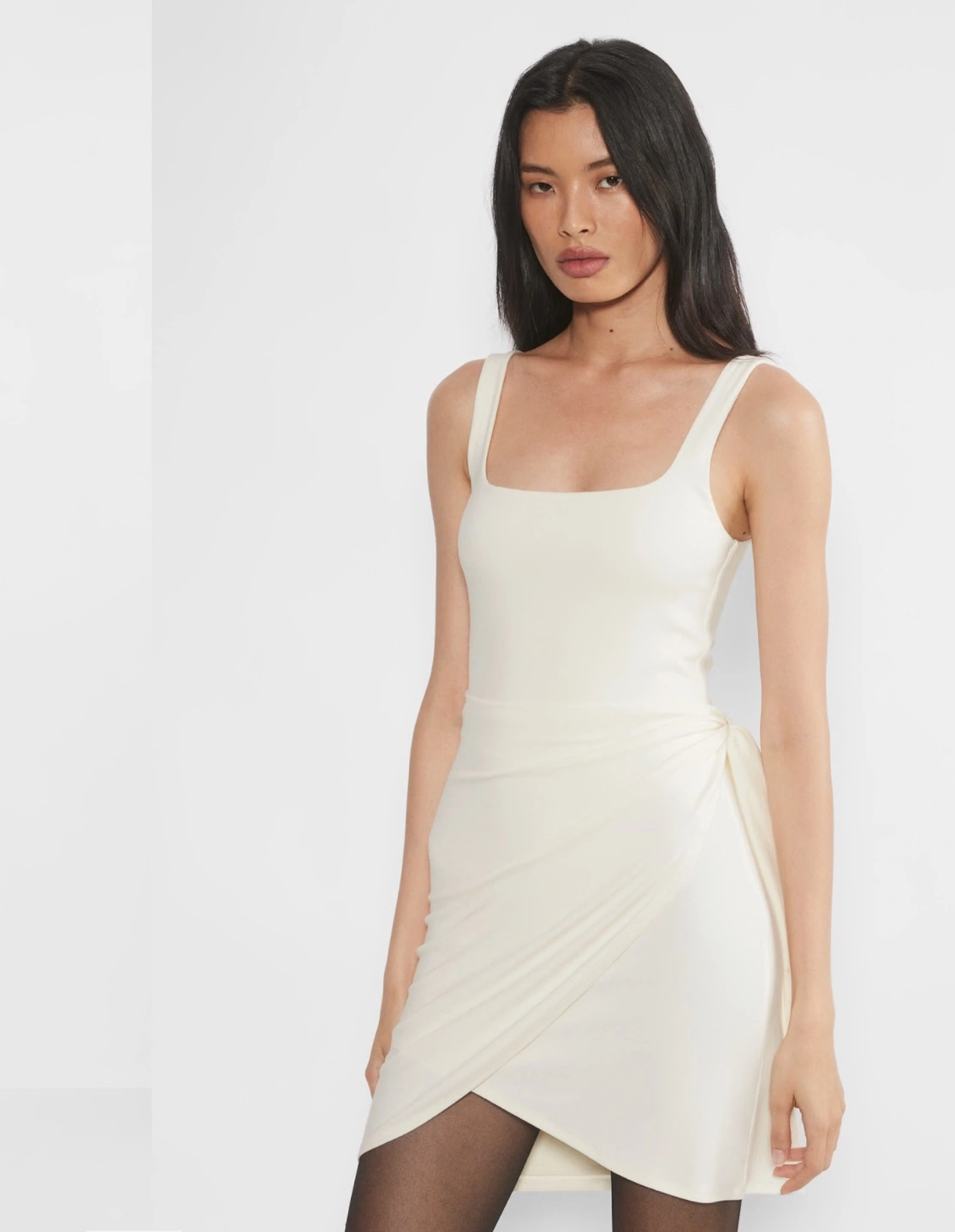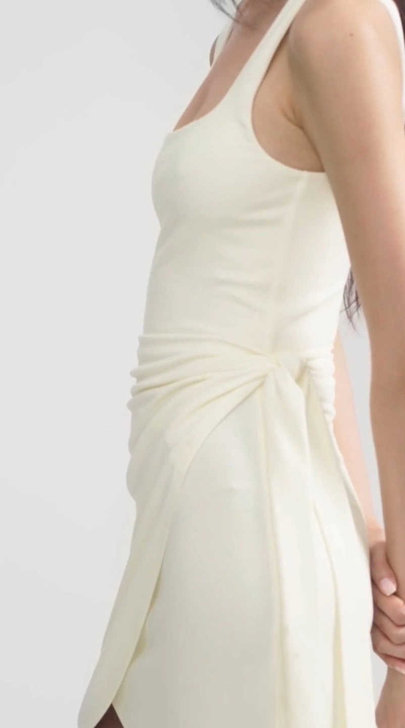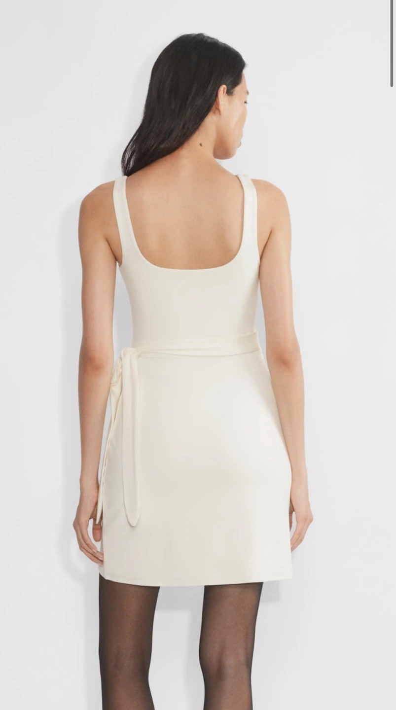 Colour: light birch. Wilfred mini dress. Features a square neckline, sleeveless design, and wrap-style skirt. Self-tie detail at the waist. Size XS Used once Like new condition Retails for $76 with tax, open to reasonable offers if taking more than 1 item of my profile