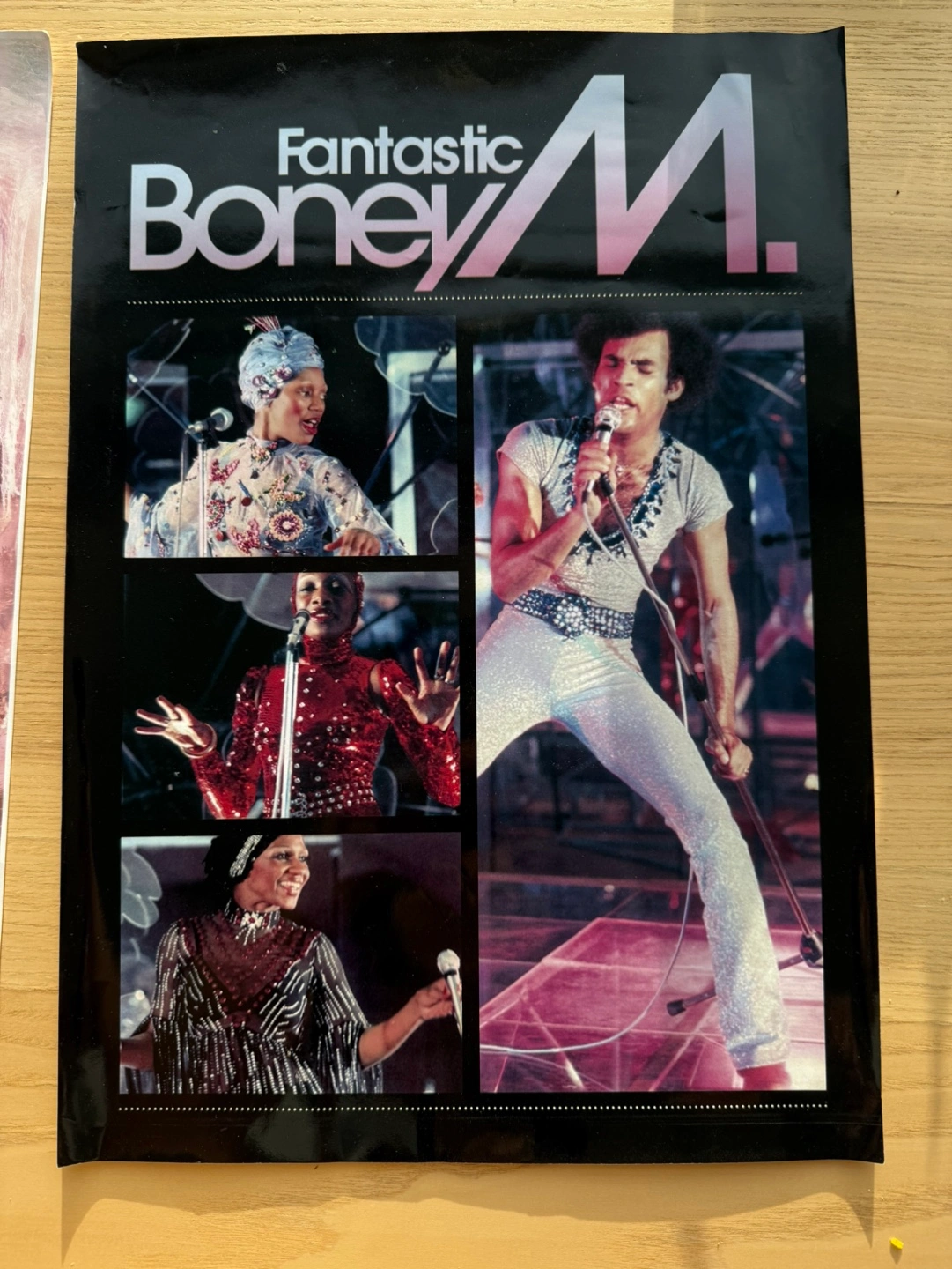 Vintage Boney M. poster. Features photos of the group performing. Great for collectors or fans. Size- 17” x 12” West end