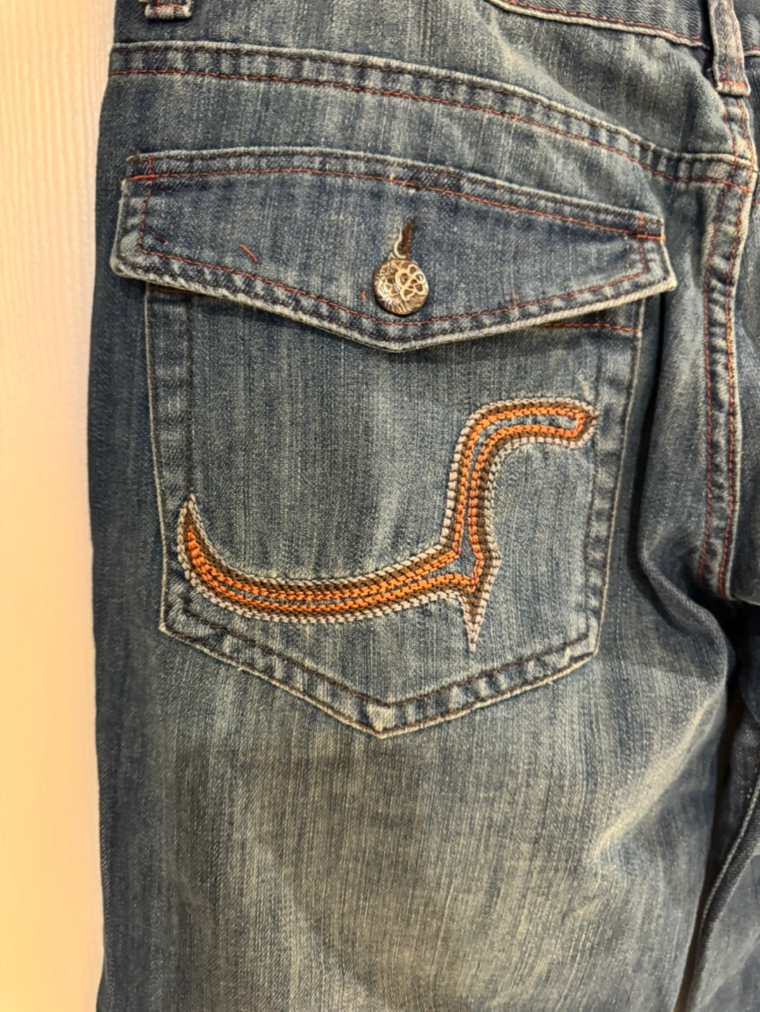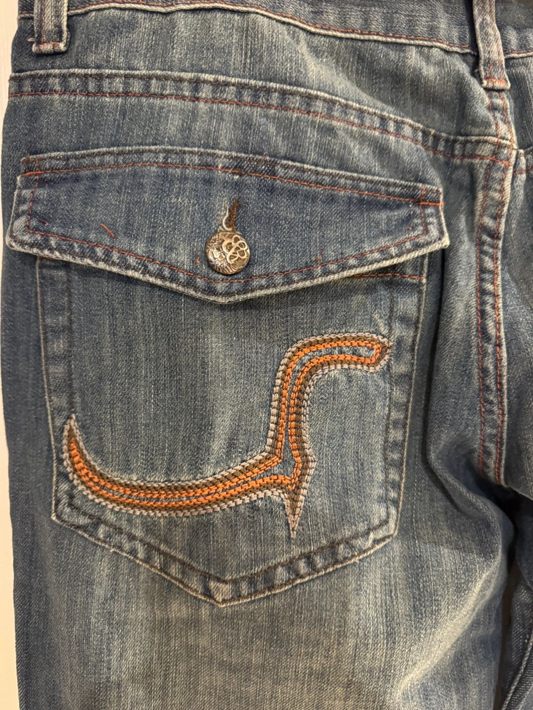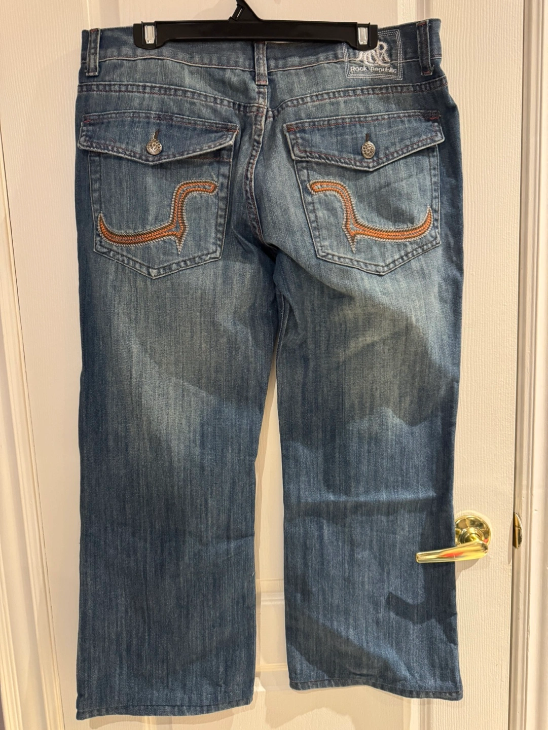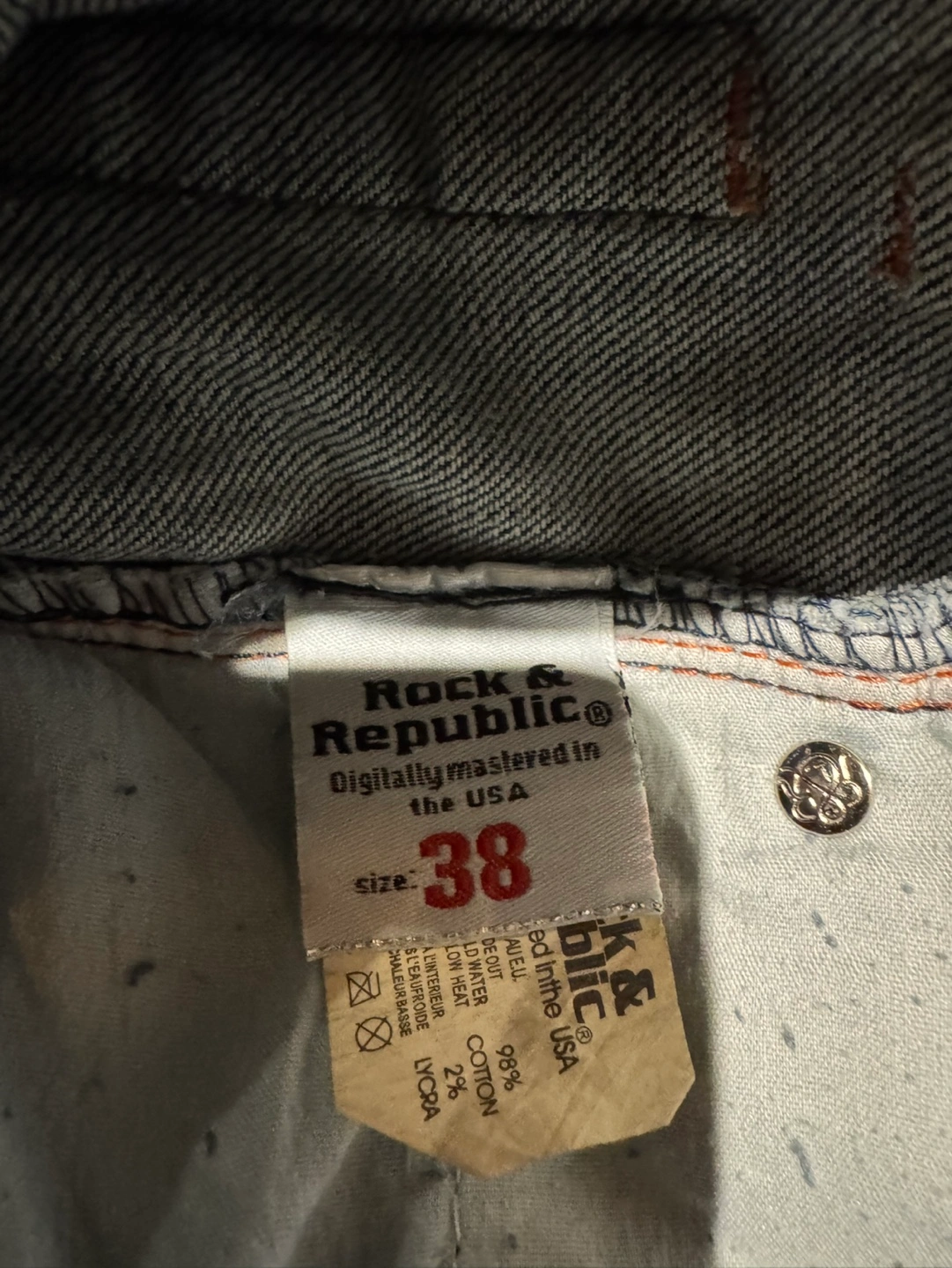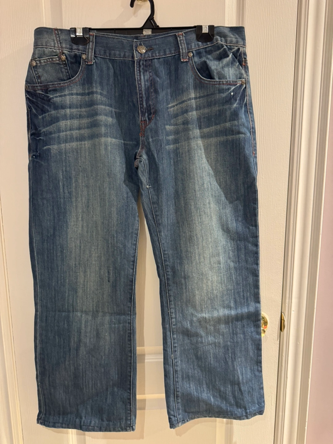 Men's Rock Republic jeans. Dark wash denim. Embroidered detailing on back pockets. Relaxed fit. Size 38x38 Pick up in Woodbridge Islington and Rutherford