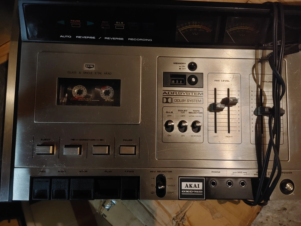 Double cassette deck. Features Dolby system and glass & single x'tal head. Includes various controls, including rec level, volume, and playback options. Good vintage condition.