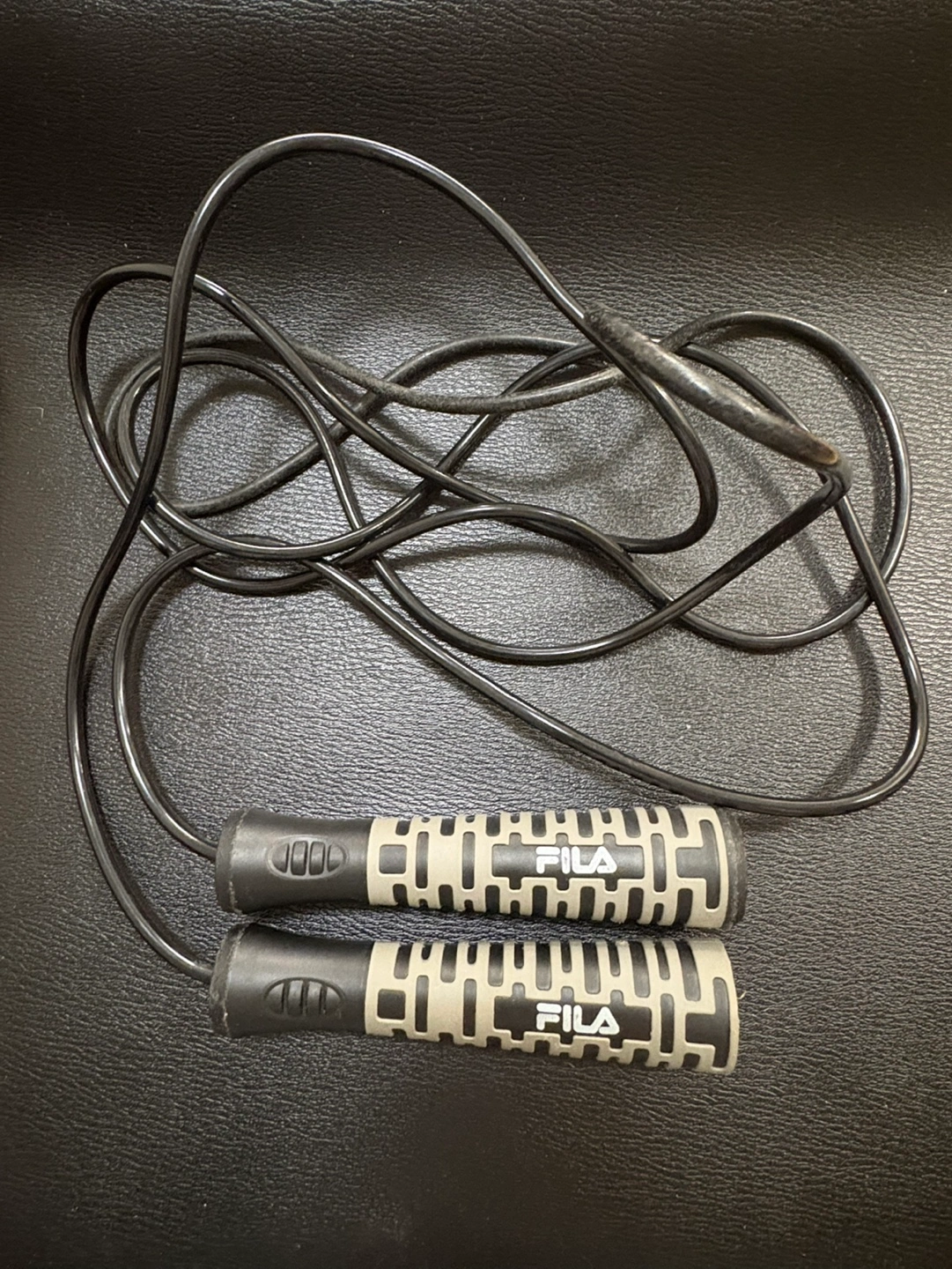 Used Fila jump rope. Durable construction. Tangle-free. Great for workouts. Good condition.