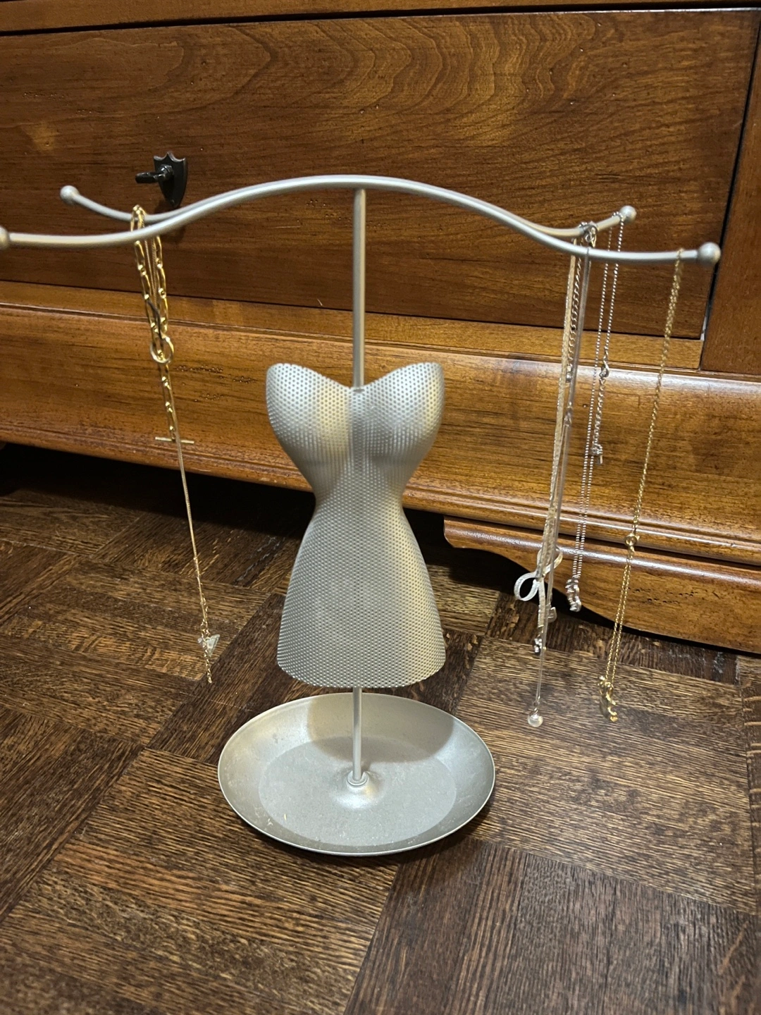 I am selling my umbra Stylish jewellery organizer only. Features a metal dress design. Holds necklaces and bracelets. Great for organizing your jewellery collection.