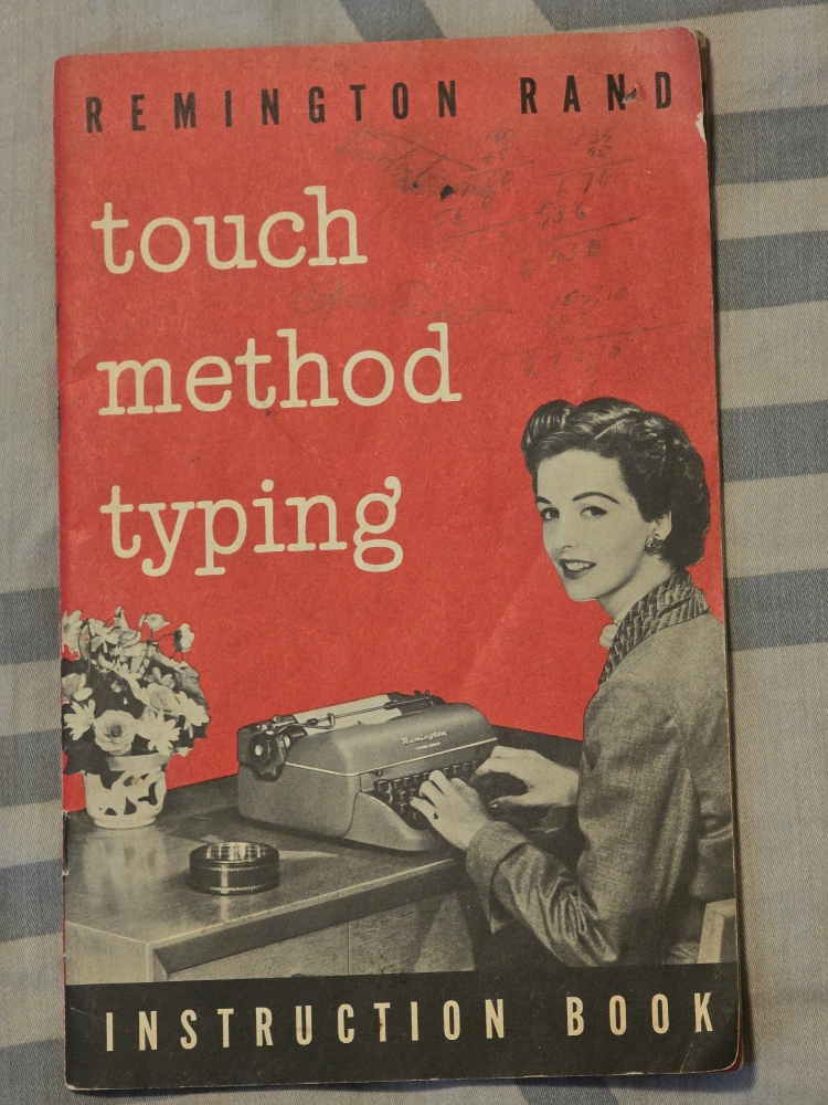 Vintage instruction book. Touch method typing guide. Shows older Remington Rand portable typewriter. Great for collectors or typists.