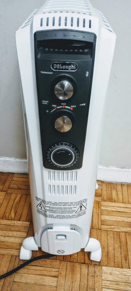 DeLonghi Dragon, Oil Filled Radiator Heater TRD40615 T, is in excellent condition, barely used , almost new. No defect or damage . No box or manual though. Fully functional*. No issues at all. * Heater would be tested at the time of purchase.. - PRICE: FIRM . - For Cash and Pick Up Only. - 3rd Party transactions and e-transfers are NOT acceptable. FEATURES: • Easy-to-use control panel for selection of temperature and power level with programmable 24 hour timer. • De'Longhi Exclusive: 75% more radiant surface area than other manufacturers. Due to unique design- the more radiant surface hence the more heat transferred to you and your surroundings. • Quick Heat Up: Warm air is rapidly distributed thanks to the increased convection heating effect and exclusive radiator design. • Better Heating: It delivers gentle heat minimizing dry air, creating a better breathing environment that is more allergy friendly with no fan to stir up dust, pollen and dander. • Integrated handles and control panel allows you to easily operate and relocate your heater at any time during or after use. • Exclusive ECO Plus feature optimizes energy consumption by regulating power flow and temperature to efficiently manage your comfort . • Ergonomic Portability: Easy movement from room to room thanks to ergonomic front and rear handles exclusive Smart Snap wheels require no installation and are rubber coated for smooth transition between surfaces. • 1500 watts of Long lasting, quiet heat for small to medium spaces with 3- heat settings Low- Med- High •Built-in Safety Elements: Enjoy peace of mind with child lock, tip-over switch that will shut off the machine if it falls over and a thermal cut-off function that turns off the machine in case of overheating. • Additionally, when the temperature dips below 41 degrees F (5C), the Anti-freeze setting automatically switches on the heater. • Durable & Low Maintenance: High quality steel assembly and permanently-sealed diathermic oil reservoir never needs refilling. A specialized multilayered painting process provides a complete, corrosive resistant finish.