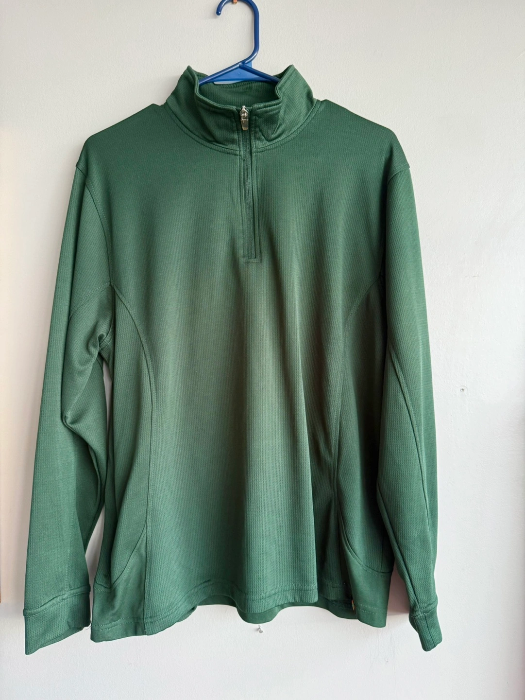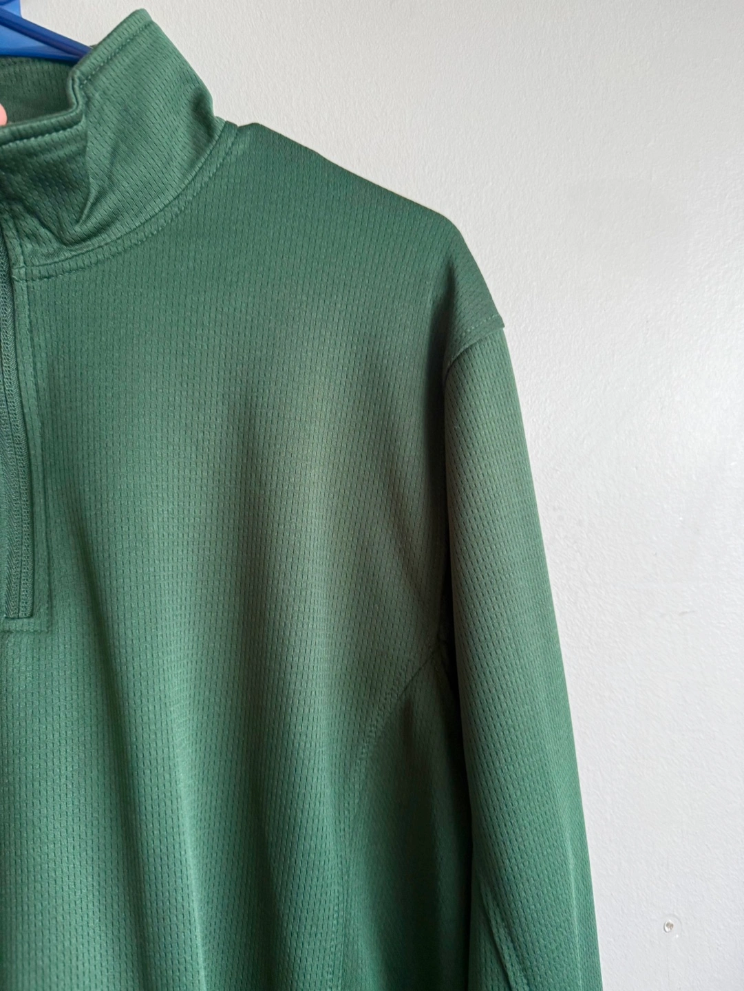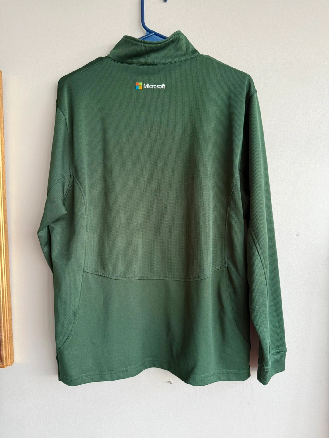 Men's dark green quarter-zip pullover. Long sleeves. Microsoft logo on the back. Olive green Good condition no faults. From smoke free pet free home Pick up at west end