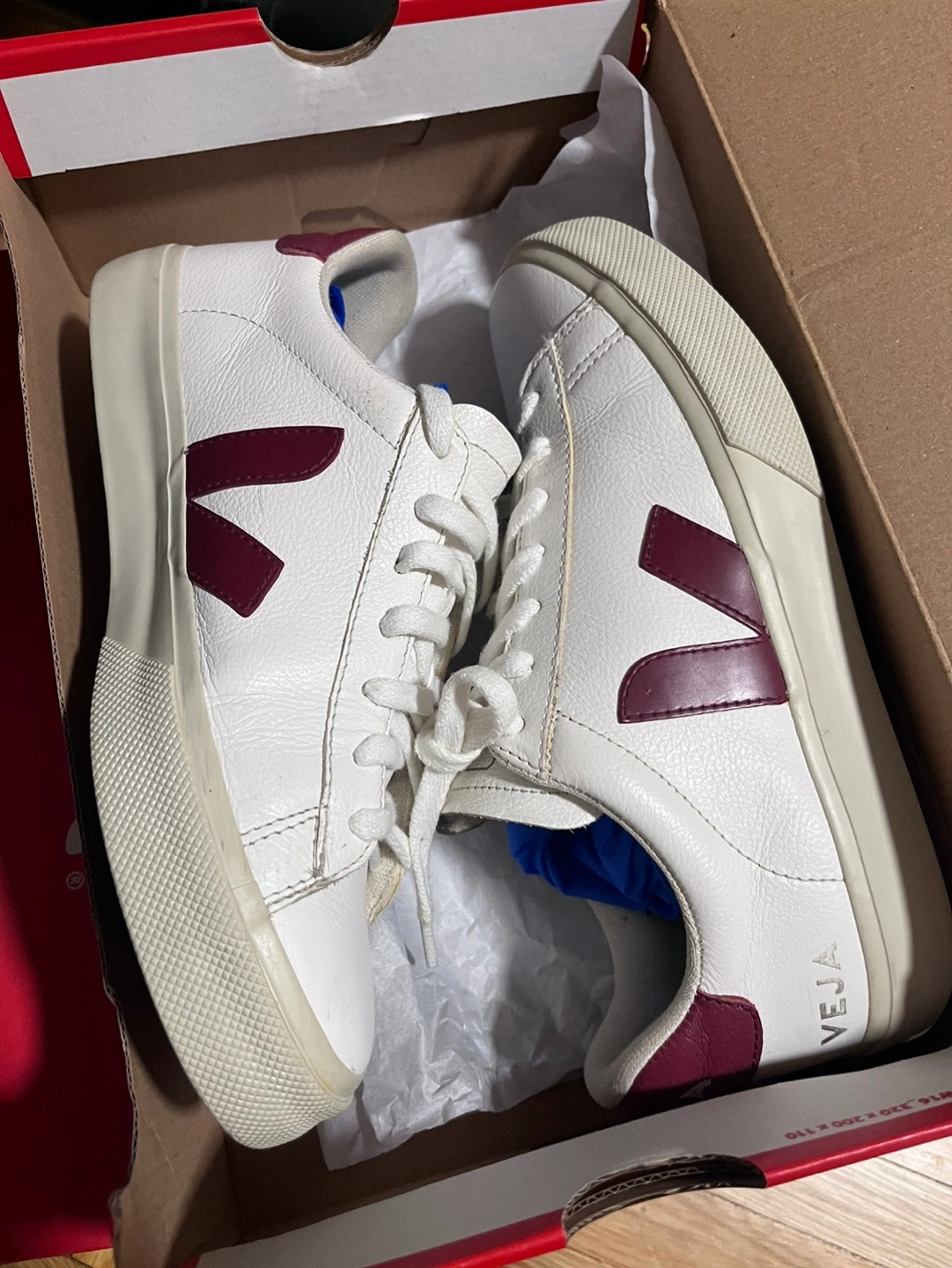 VEJA Esplar Leather Sneakers US 8- White/Burgundy