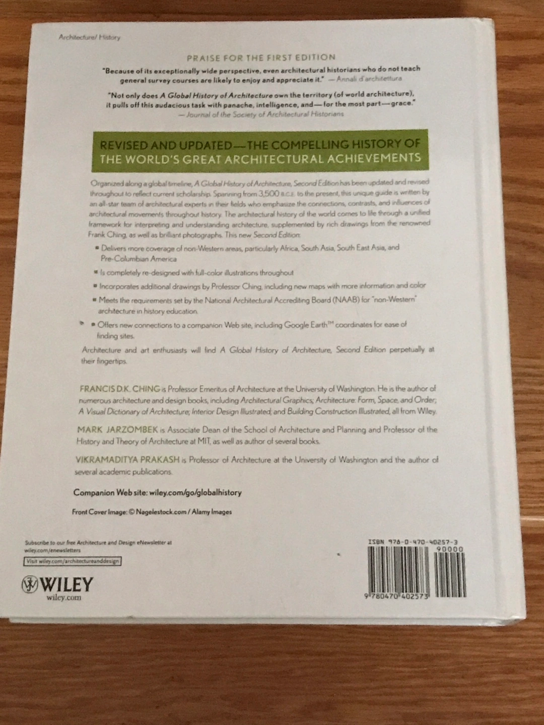 Second edition textbook. Authors include Francis D.K. Ching, Mark Jarzombek, and Vikramaditya Prakash. Numerous illustrations and colour maps. Excellent condition. ISBN: 978-0-470-40257-3