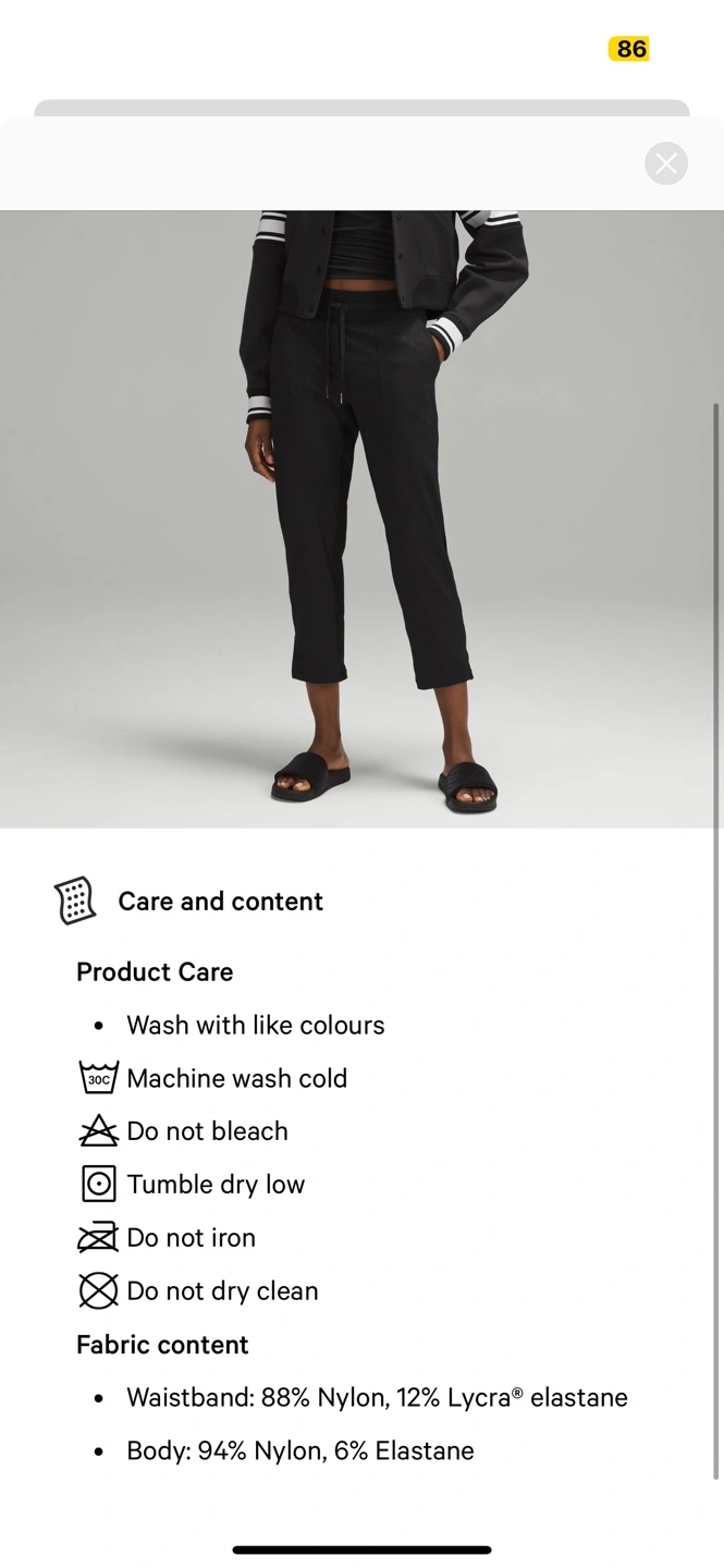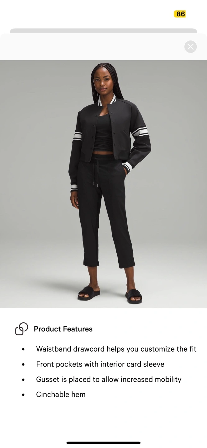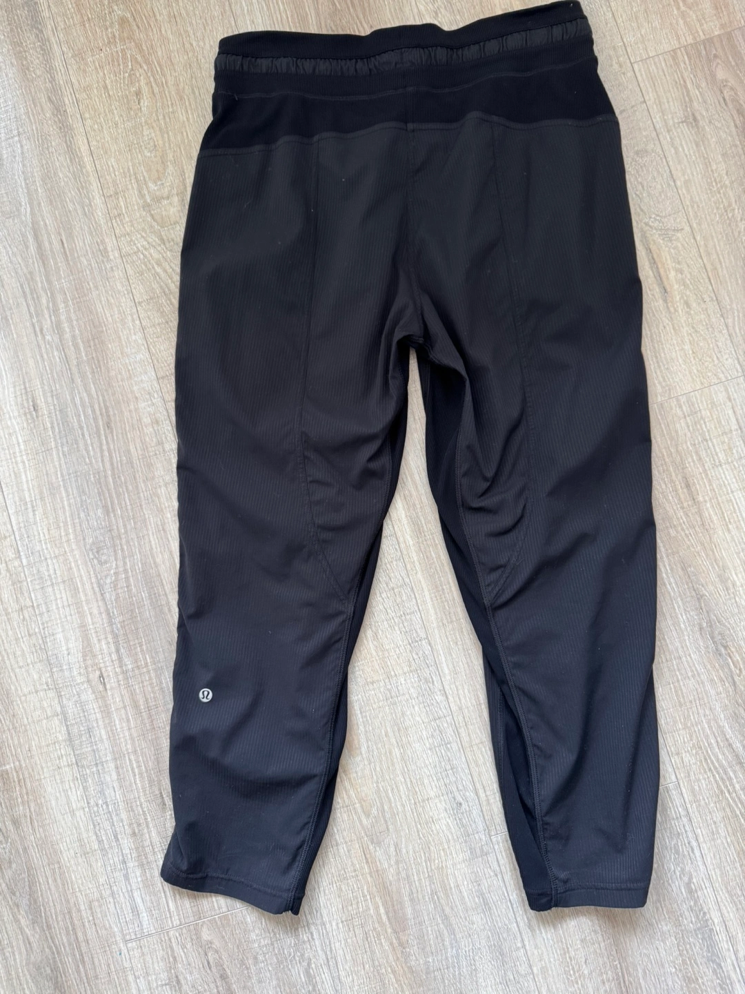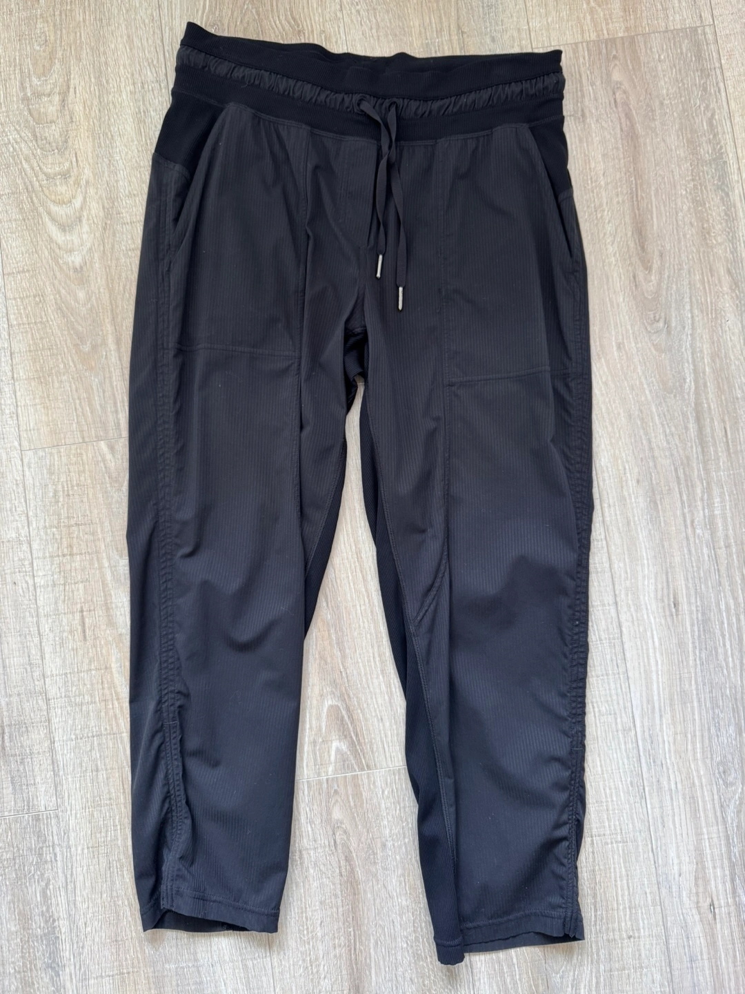 I purchased this last year before a trip and they are super lightweight and comfortable for travel and day to day. Features a waistband drawcord, front pockets with interior card sleeve, gusset for mobility, and cinchable hem. Size 8. I lost weight and they are just too big for me now - hoping they will go to someone who can enjoy them.