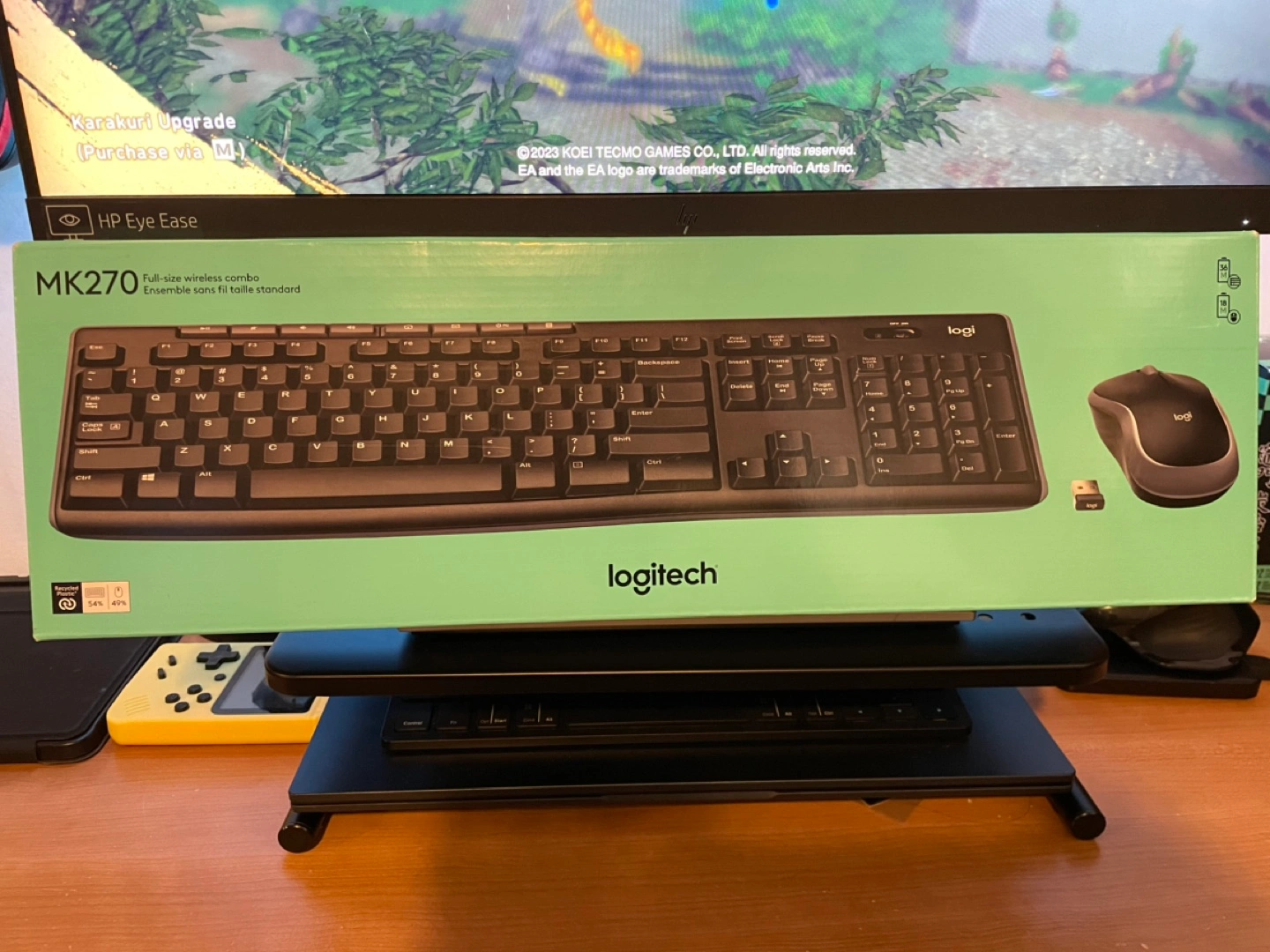 Full-size wireless keyboard and mouse. Includes USB receiver. Used like 5 times only
