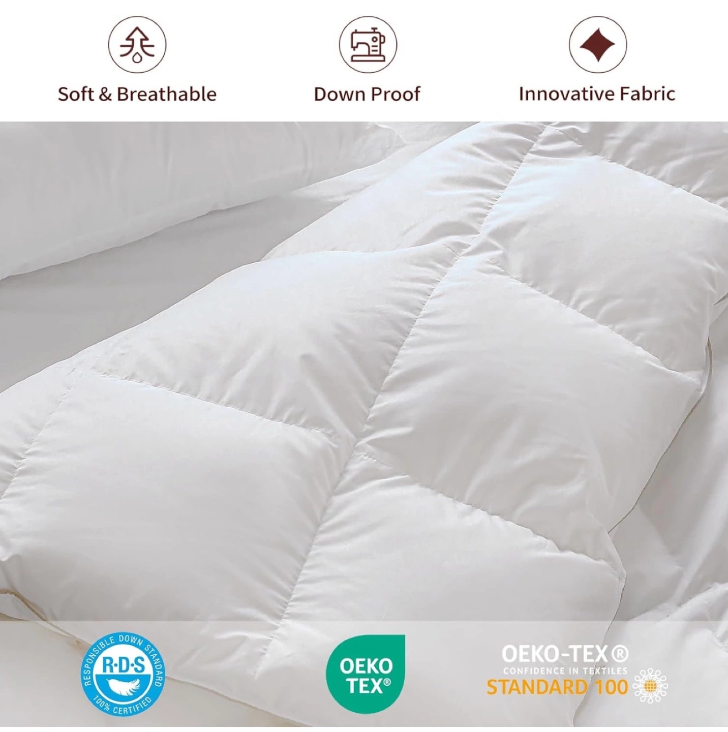 Luxury Goose Feather Down Comforter Queen Size Duvet Insert,All Season Down Ultra-Soft Down Proof 100% Cotton with 8 Corner Tabs,Baffle Box Design,Oeko TEX Certified