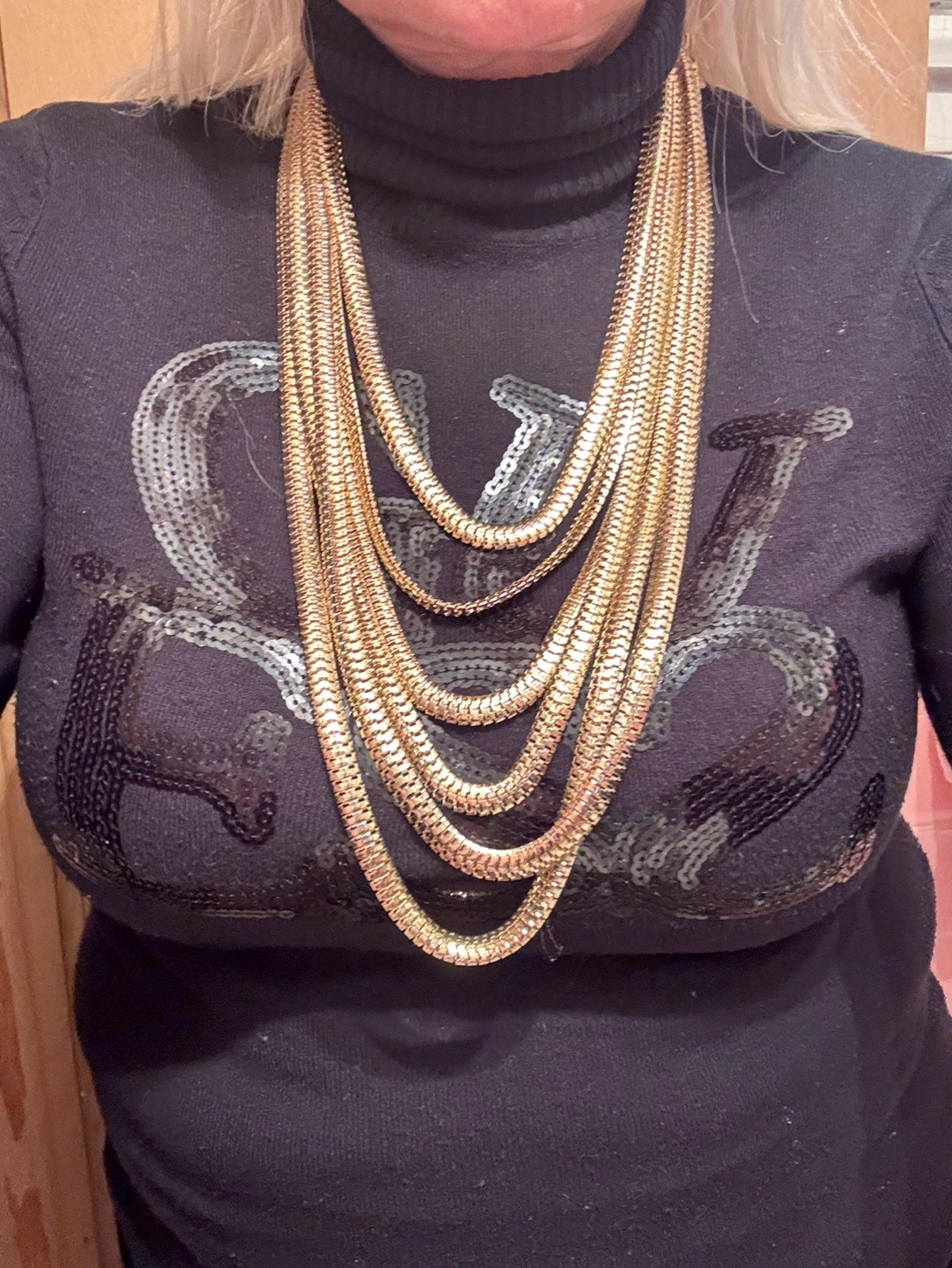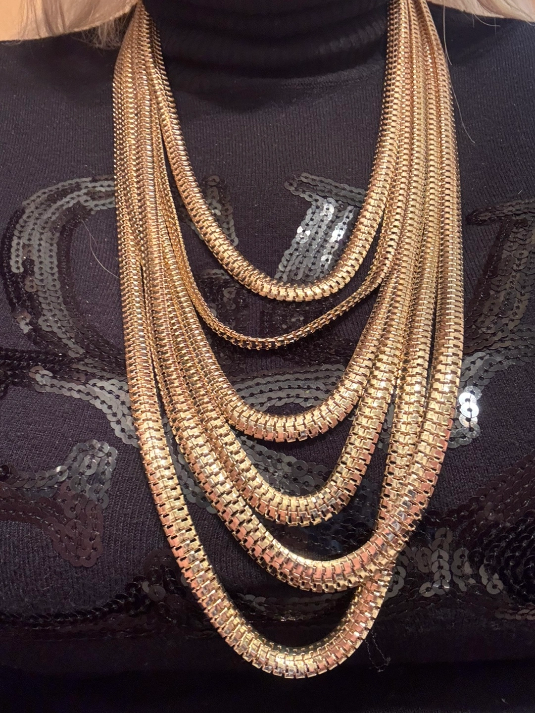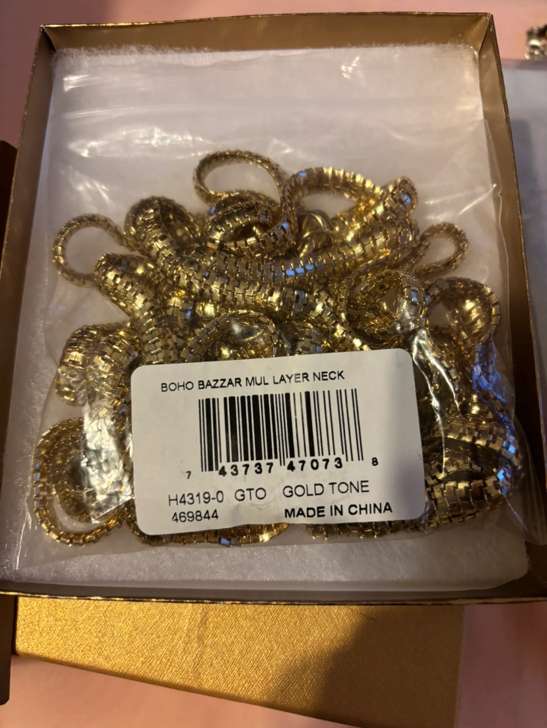 Gorgeous gold-tone necklace. Multiple layers. Layered look. Comes in original box. Made in China.