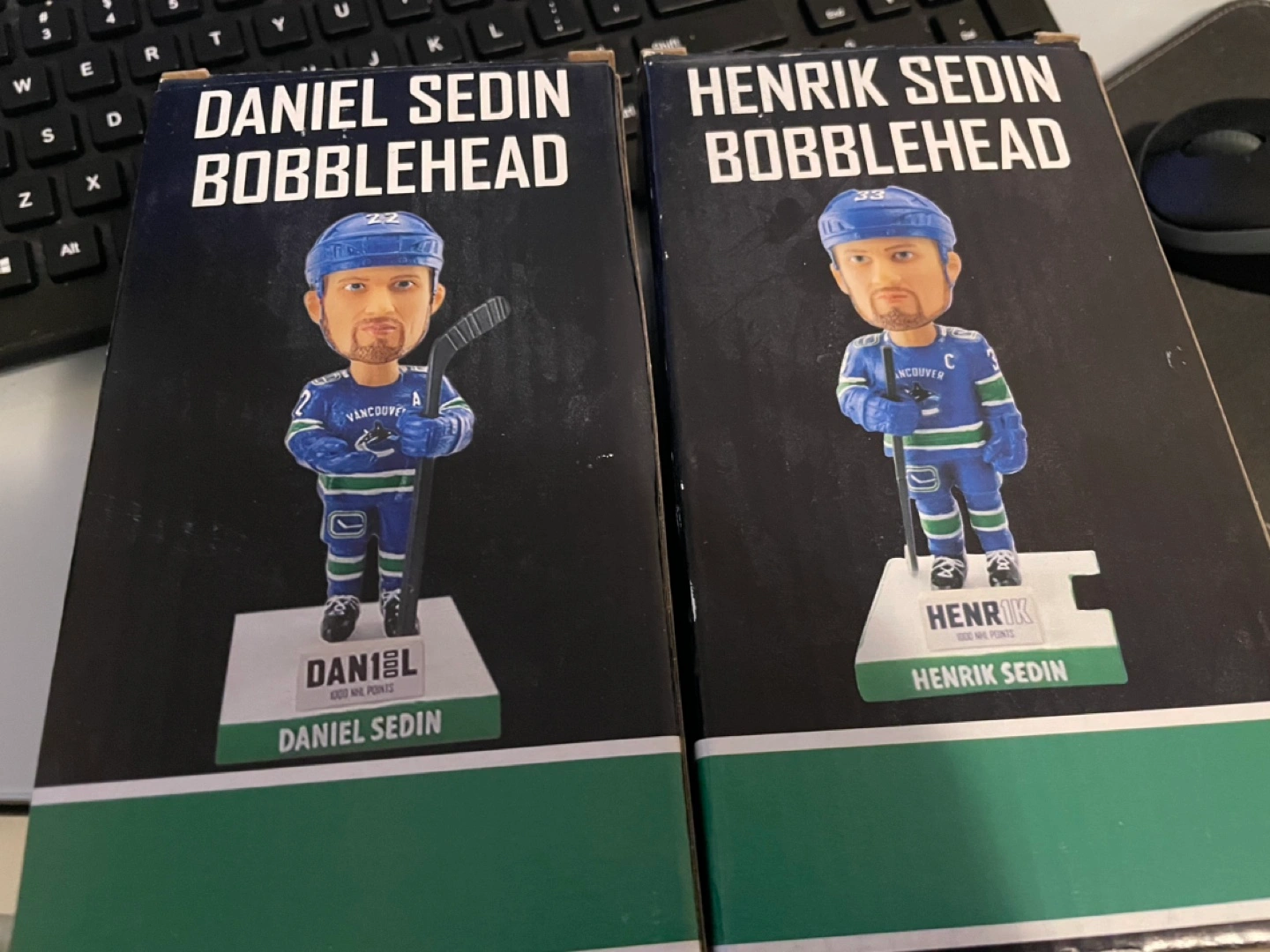 Two new Canucks bobbleheads. Daniel and Henrik Sedin. In original boxes. Pick up at 7488 Byrnepark walk Burnaby