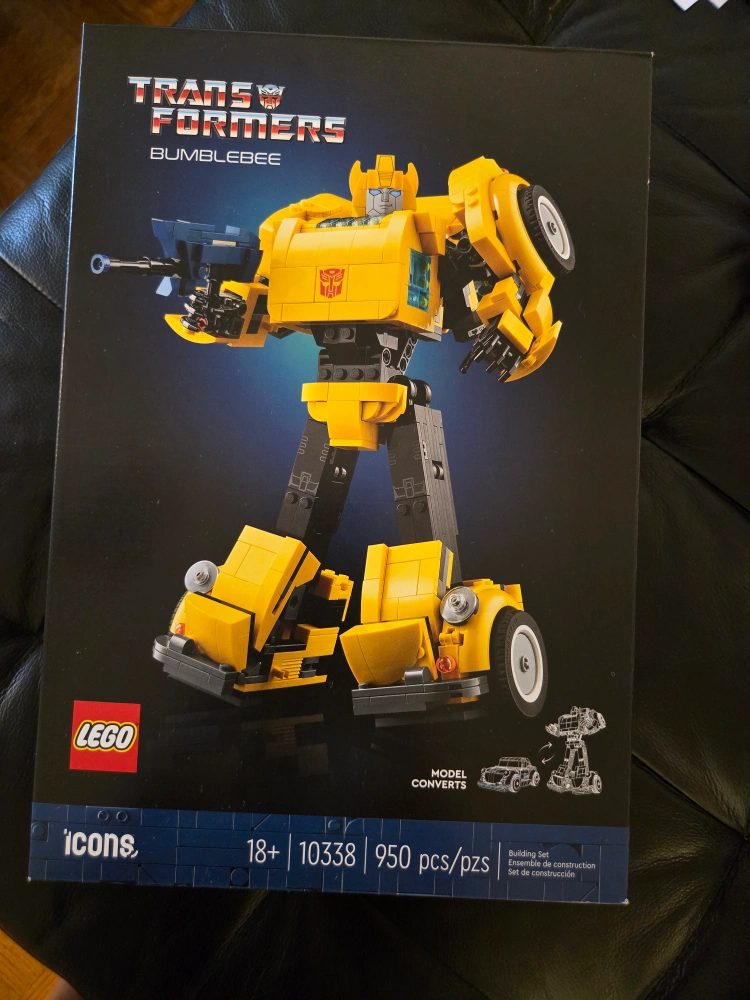 New LEGO Icons set. Bumblebee model. Transforms from car to robot. 950 pieces. For ages 18+. Collector's item.