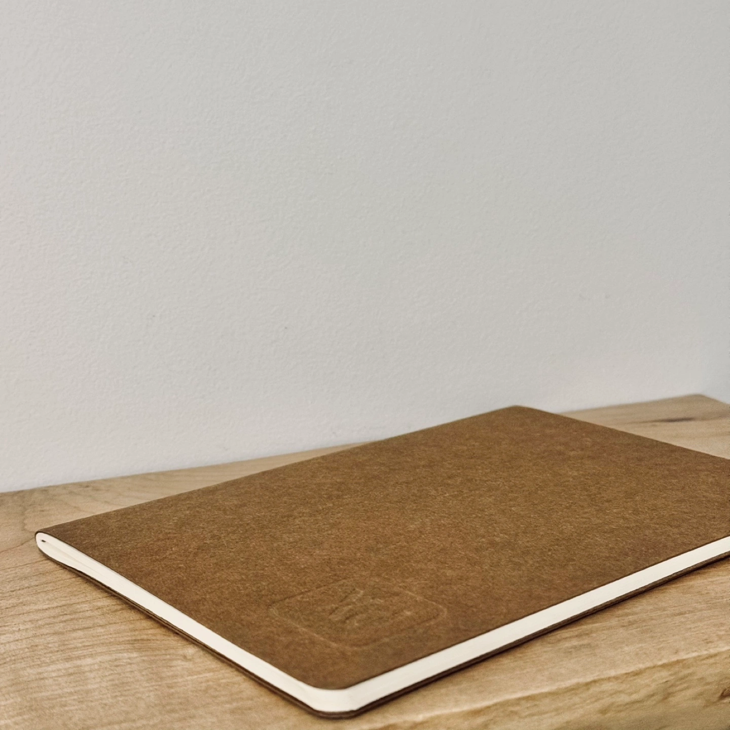 Brown leather-bound notebook. Blank pages. Embossed XD Design logo. Perfect for journaling, note-taking, or sketching.