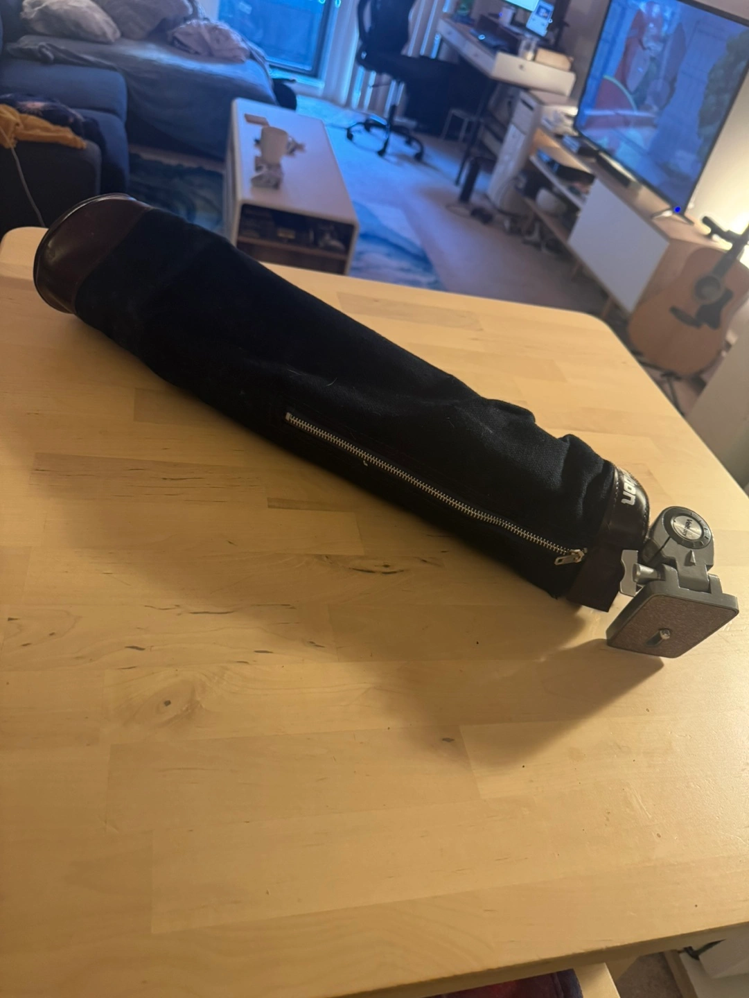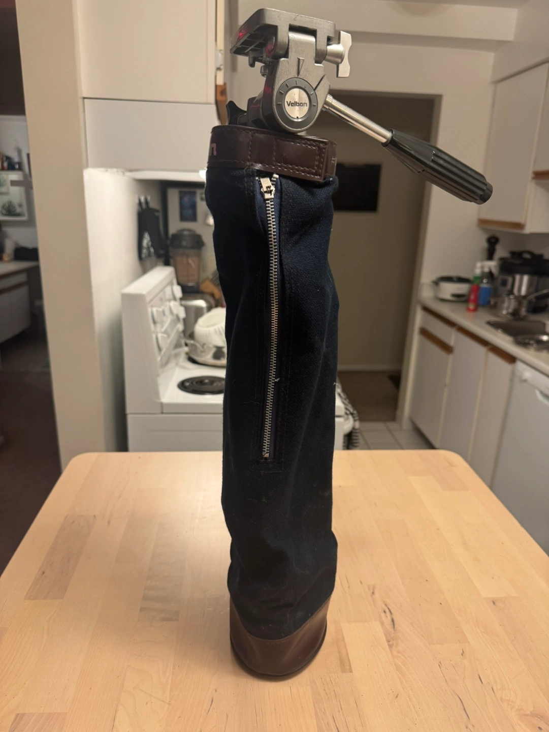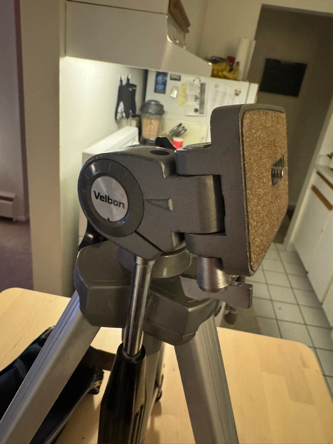Lightweight aluminium tripod. Features adjustable height and tilt head. Includes a carrying case. Great for photography or videography.