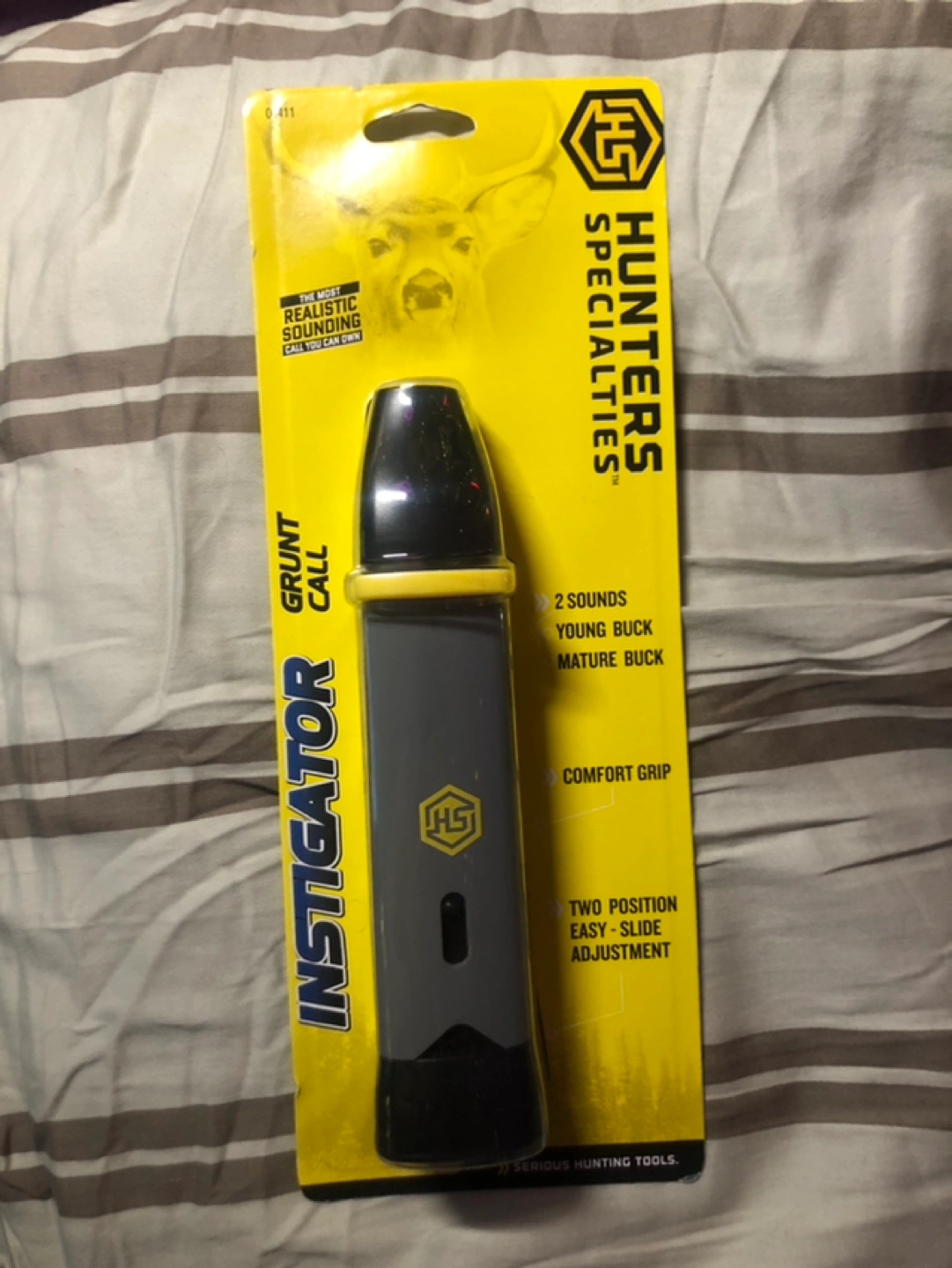 New in package. Two sounds: young buck and mature buck. Features comfort grip and easy-slide two position adjustment.