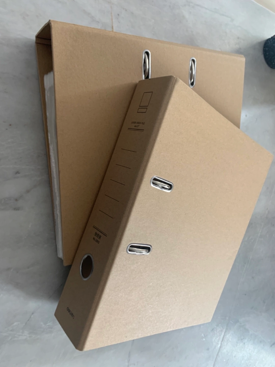 ๐ Set of 2 Lever Arch File Binders โ Sturdy & Spacious โข Set of 2 binders, both in excellent condition โข Kraft paper cover with durable metal rings โข Strong lever arch mechanism for secure document storage โข Includes plastic sheet protectors (as shown in photos) โข Great for organizing office, school, or home documents