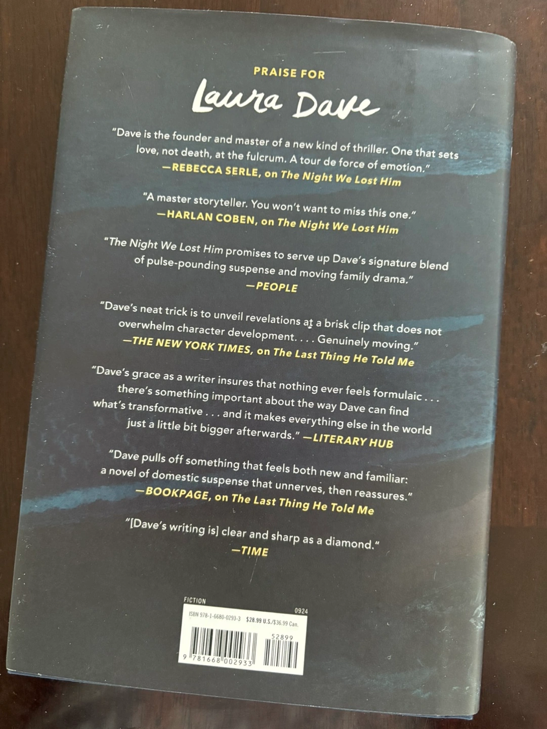 Hardcover novel. #1 New York Times Bestselling Author of The Last Thing He Told Me. Excellent condition. Baseline and Greenbank