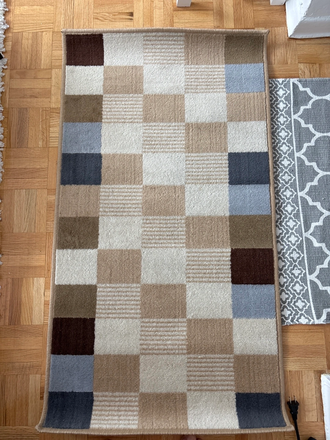 IKEA FASTIGHET rug. 60x110 cm (24x43 inches). Machine washable. Neutral colour scheme. Geometric pattern. Made in Mexico. Discontinued at IKEA.