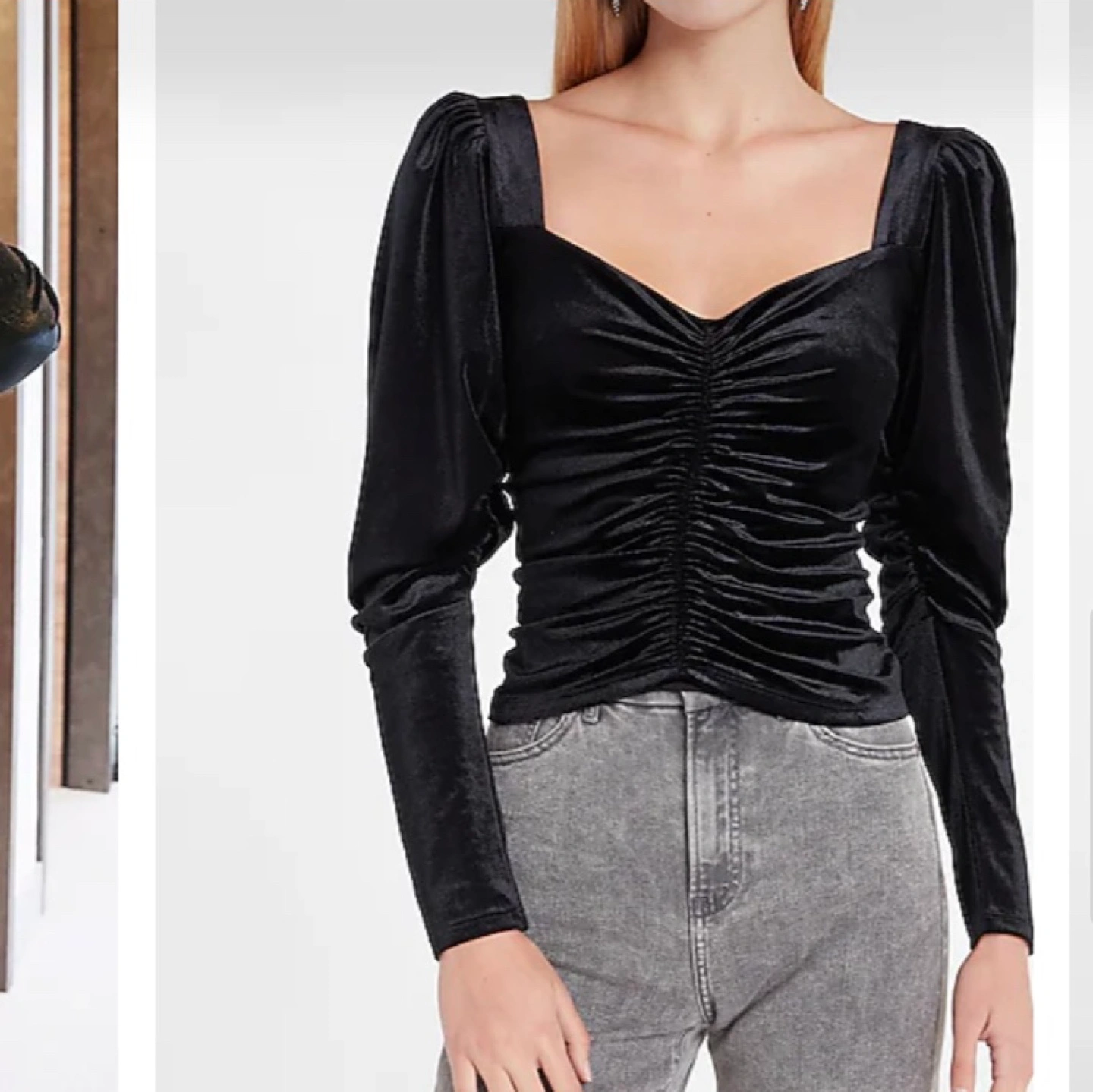 Brand new condition with tags Black velvet top. Long sleeves. Ruched front. Square neckline. Puffed sleeves. Regular price $80 asking for $20 Pick up at west end