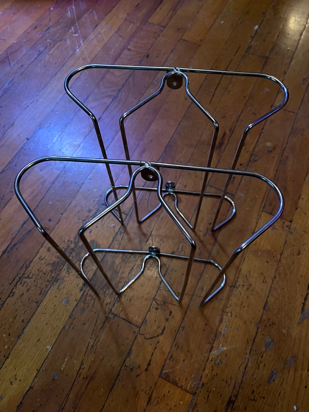 Two metal wine glass holders (for under a cabinet). Holds about 4 stemmed glasses per unit. Required four screws. Pick up only near Gus Tacos in Parkdale. Weekdays after 4pm or on weekends.