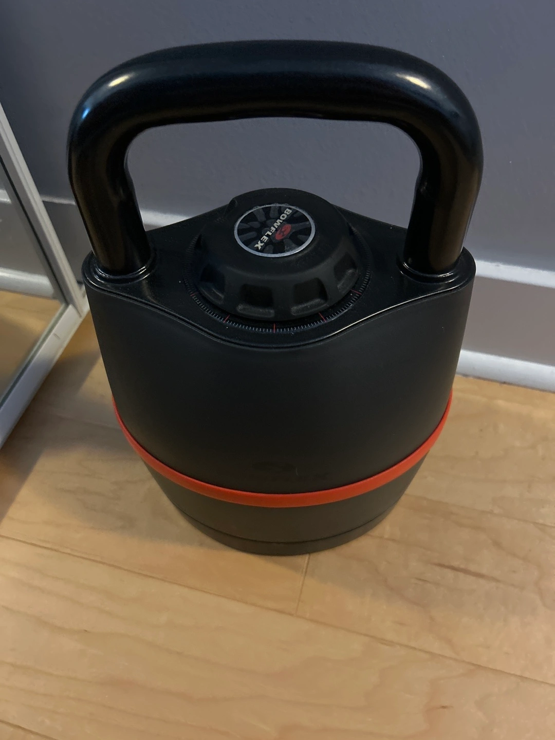Adjustable weight kettlebell. Up to 40 pounds . Great for home workouts.